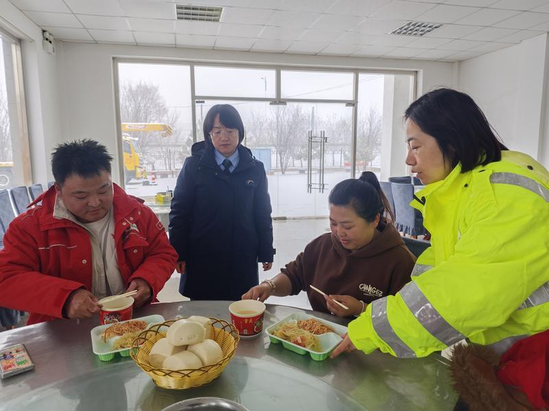 為“民”服務(wù)暖人心。大雪無情,人間有愛。降雪導(dǎo)致部分司乘出行受阻,慶城收費(fèi)所安排專人對收費(fèi)廣場因交通管制滯留人員做好解釋和情緒安撫工作,并化身“紅色天使”做好便民服務(wù),一杯熱水,一份便飯,用真心服務(wù)司乘,用真情傳遞溫暖,用真愛彰顯新時(shí)代高速人的奉獻(xiàn)精神。