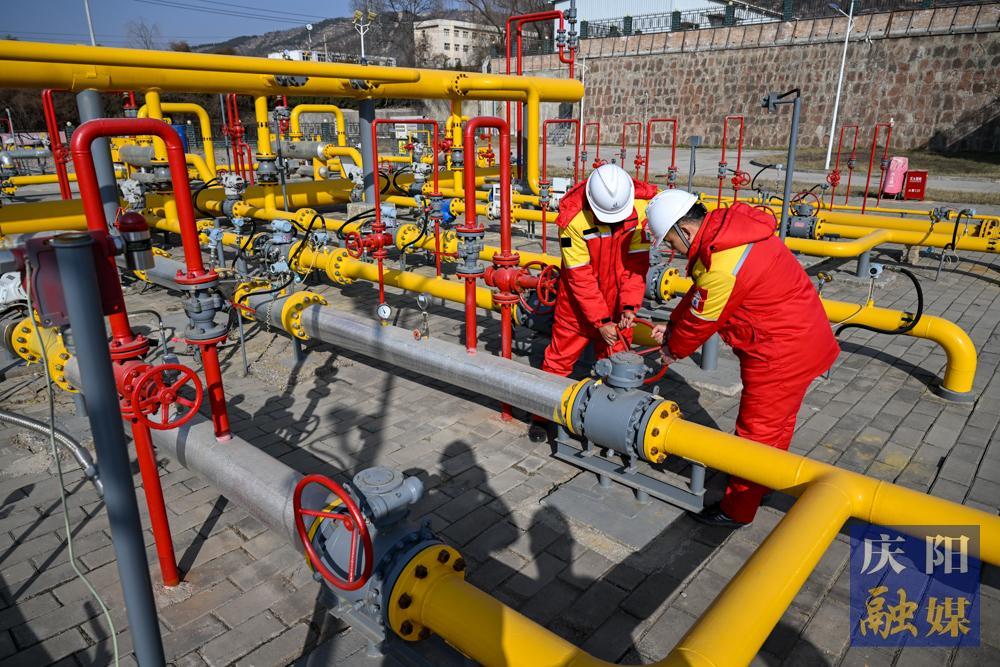 慶陽(yáng)永慶慶城天然氣有限公司CNG母站,工作人員巡檢天然氣管道。