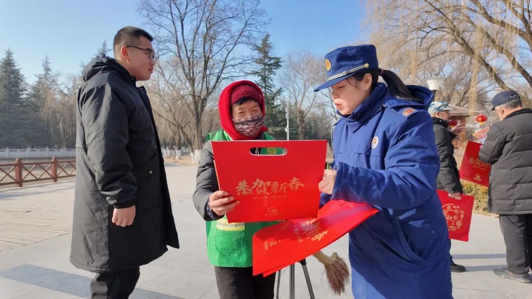 “您好,我們是慶陽消防的宣傳人員,這有一份春聯(lián)禮包送給您,祝您春節(jié)愉快,闔家幸福,萬事如意……”為進(jìn)一步提高轄區(qū)居民消防安全意識,減少火災(zāi)事故發(fā)生,保障轄區(qū)群眾能夠度過一個安全、祥和的新春佳節(jié),1月21日,慶陽市消防救援支隊(duì)宣傳人員走進(jìn)轄區(qū)年貨市場、解放路街道東湖社區(qū)等地開展“送萬福、進(jìn)萬家”送春聯(lián)送平安活動,將制作精美的春聯(lián)、窗花等禮品以及消防安全宣傳彩頁送進(jìn)千家萬戶。