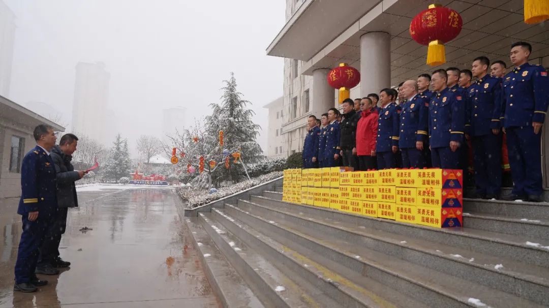 1月24日,在春節(jié)來臨之際,甘肅濱河集團(tuán)河?xùn)|大區(qū)營銷總監(jiān)孫新民、慶陽分公司總經(jīng)理付登程一行專程來到慶陽市消防救援支隊(duì)看望慰問全體消防救援人員,并送上慰問品。