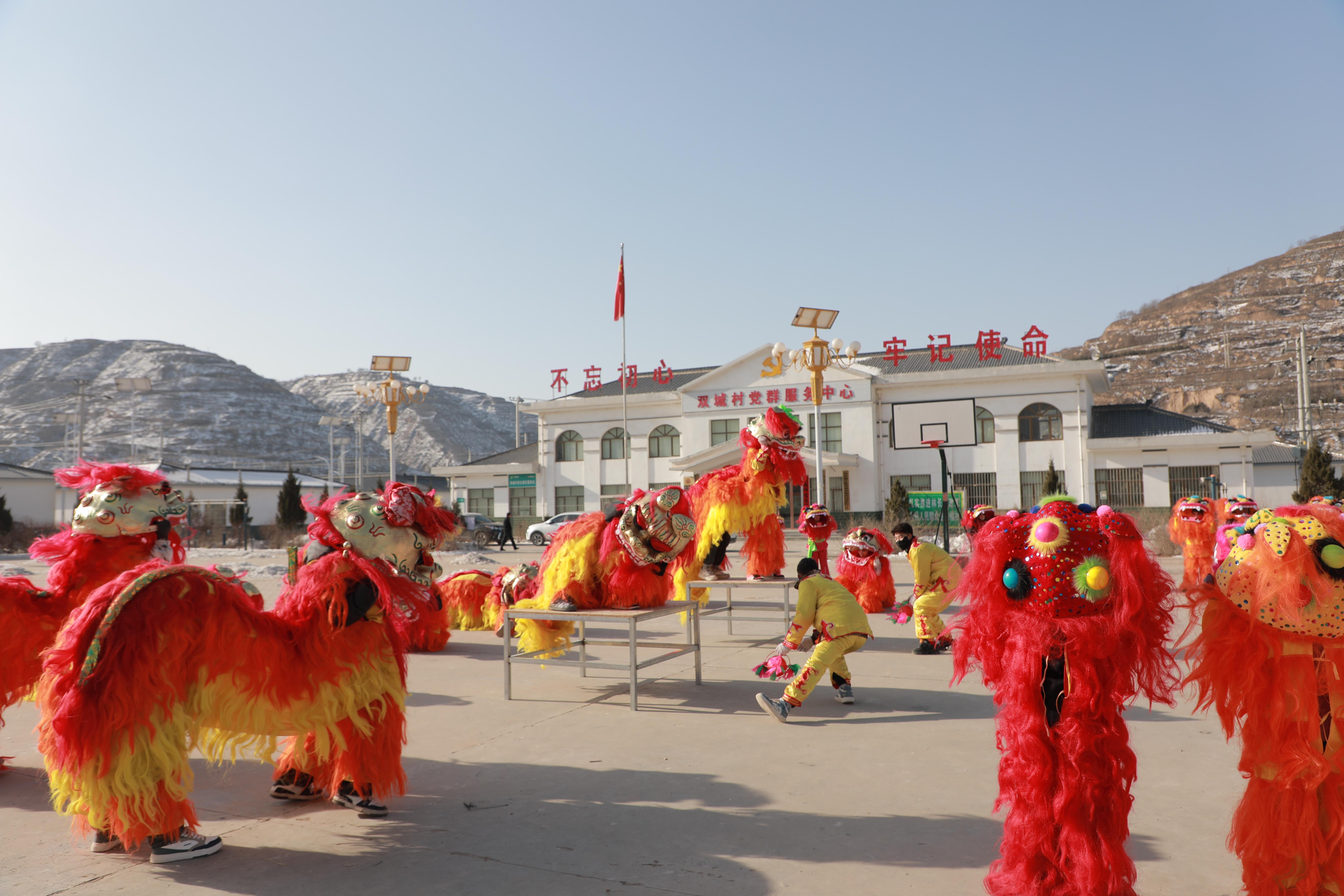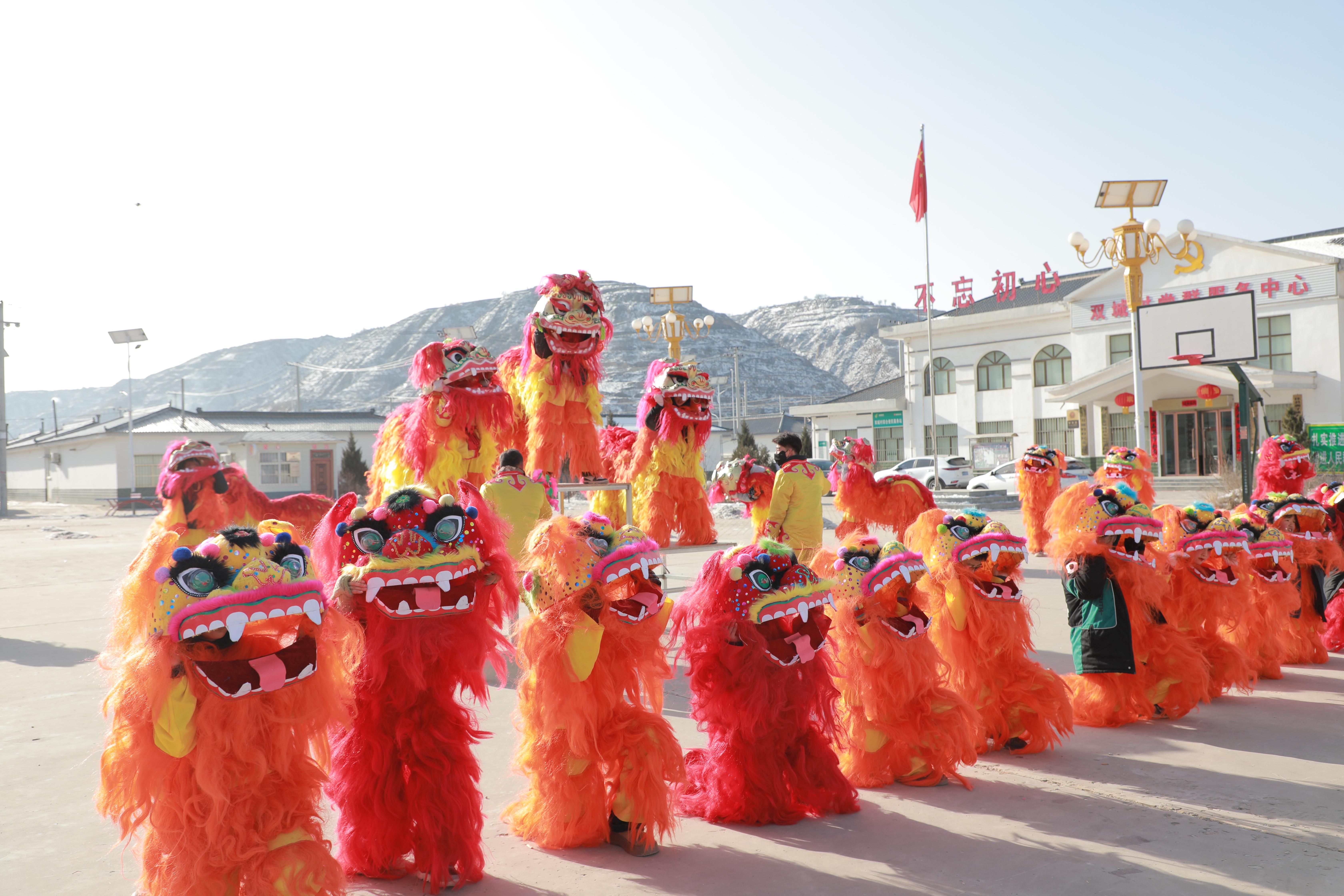 “《雄獅拜年》這個節(jié)目,我們已經(jīng)排練10天了,今年都是新的道具,大小獅子近50只,展示我們積極向上的精氣神,給全縣人民拜年。”三十鋪鎮(zhèn)社火隊負(fù)責(zé)人張發(fā)說。