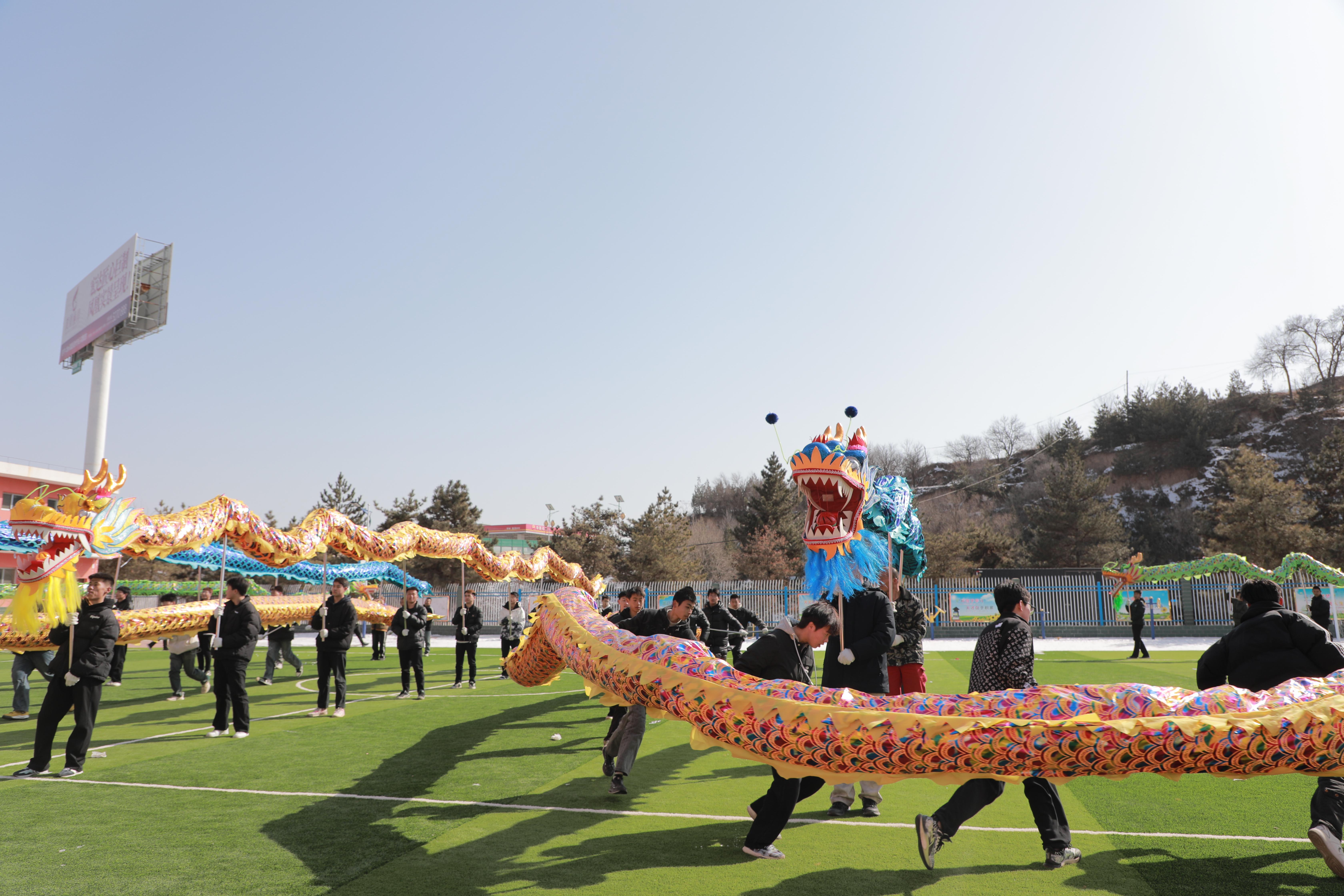 社火排練中,《九龍鬧春》《雄獅拜年》最為亮眼,嶄新的道具讓人耳目一新。
