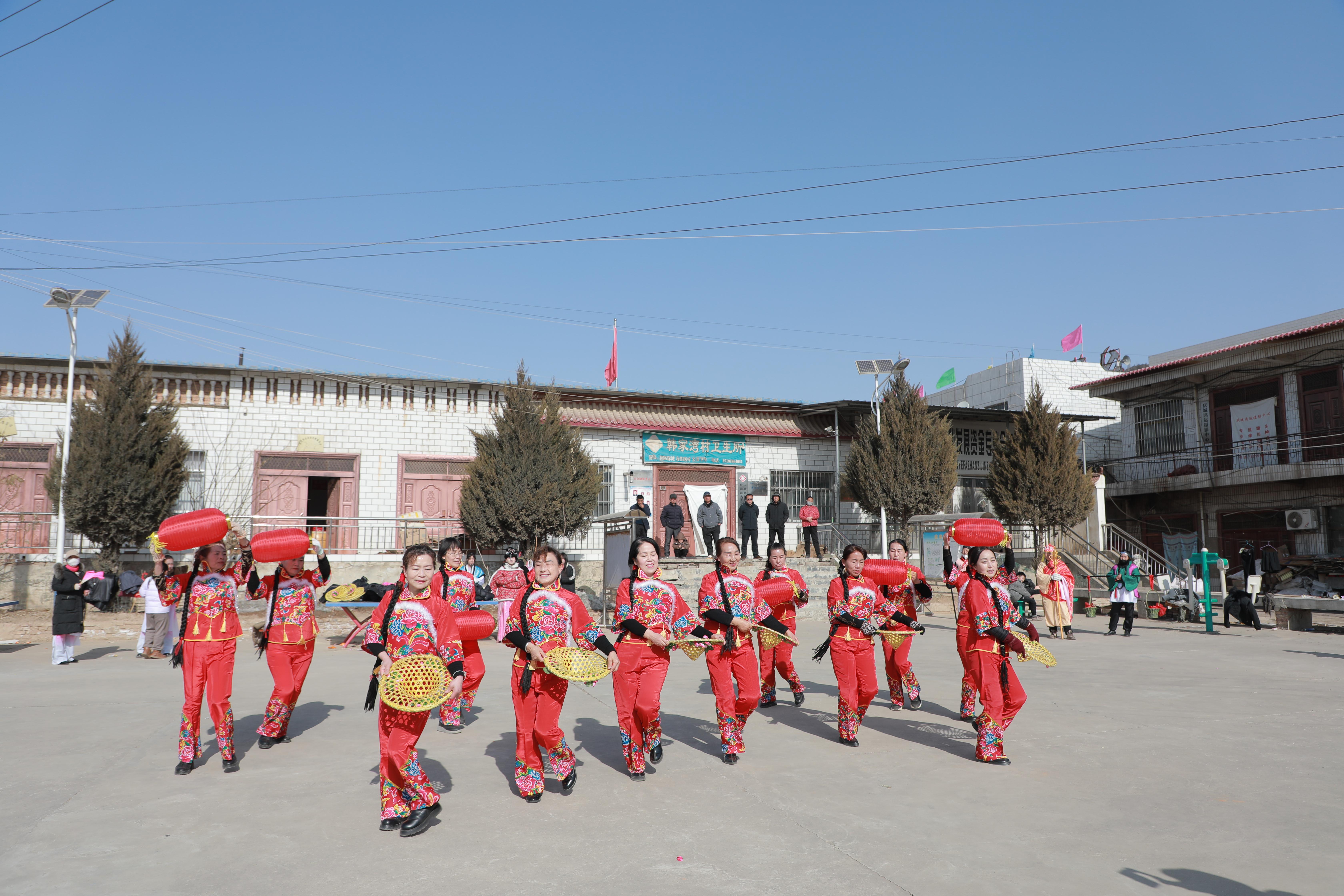 “我們舞蹈隊的領(lǐng)舞帶著我們排練,我自己也很喜歡跳舞,每次有活動都積極參加,很高興參加今年的社火演出,這次和姐妹們帶來舞蹈《慶豐收》,表達(dá)我們農(nóng)民豐收的喜悅心情。”三十鋪鎮(zhèn)韓灣村村民惠白選說。