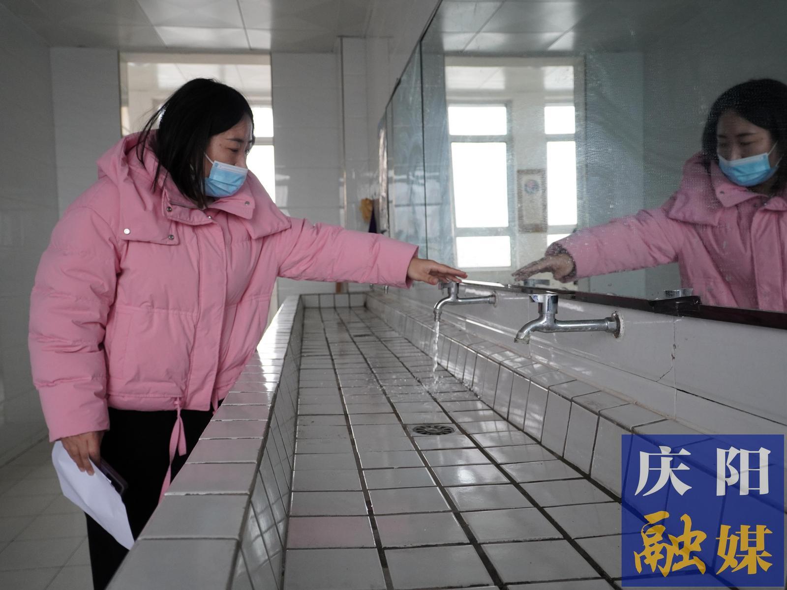 北師大慶陽(yáng)實(shí)驗(yàn)學(xué)校老師和物業(yè)工作人員檢查水龍頭