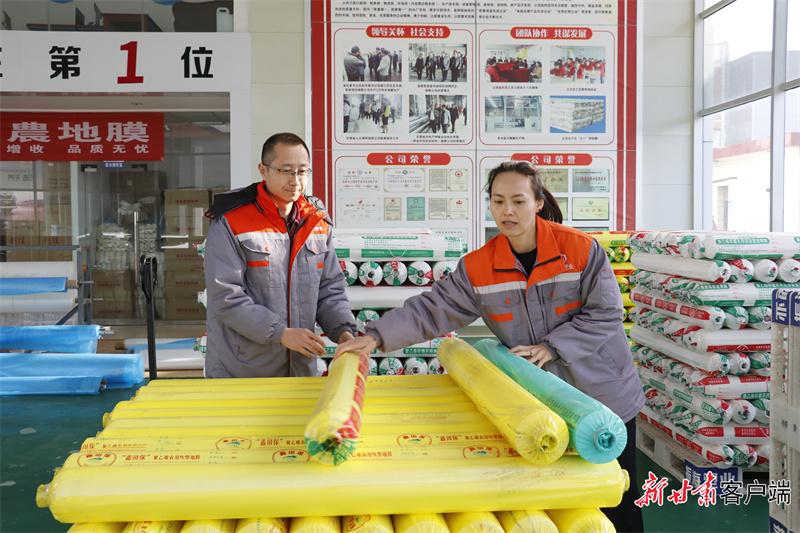 西峰區(qū)農(nóng)資企業(yè)銷售人員碼放農(nóng)用膜。