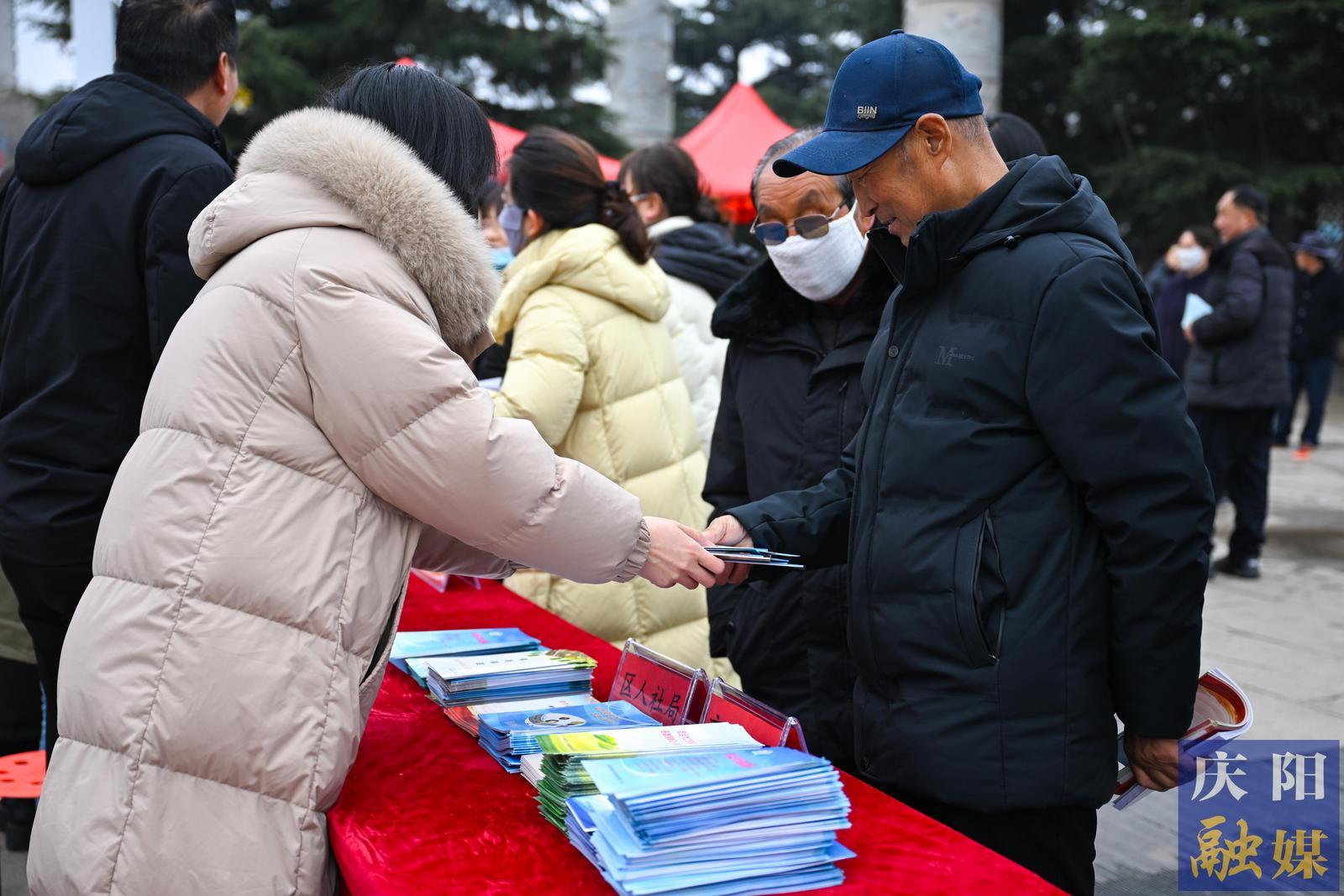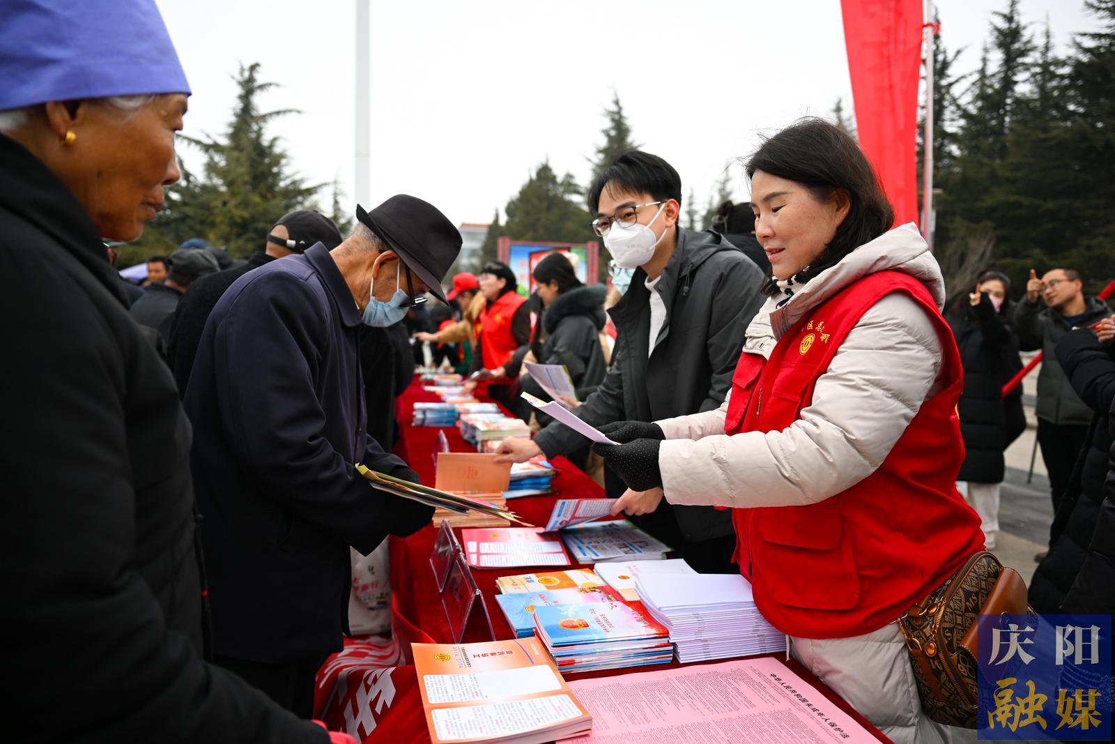 慶陽市委政法委工作人員向市民發(fā)放普法宣傳冊(cè)。