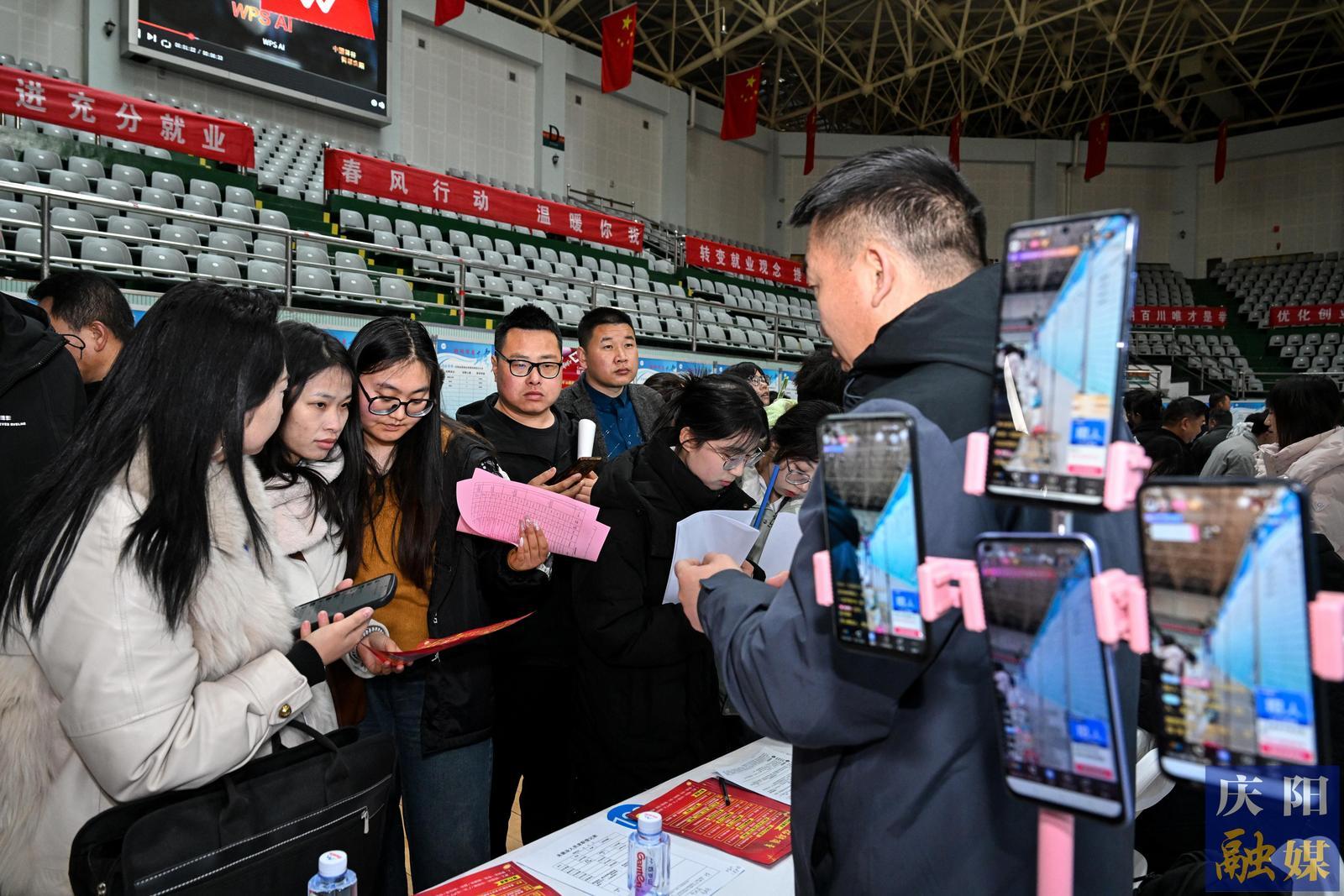 “春風送崗位 巾幗建新功”慶陽市女性就業(yè)專場招聘暨直播帶崗活動現(xiàn)場(3月7日攝)。