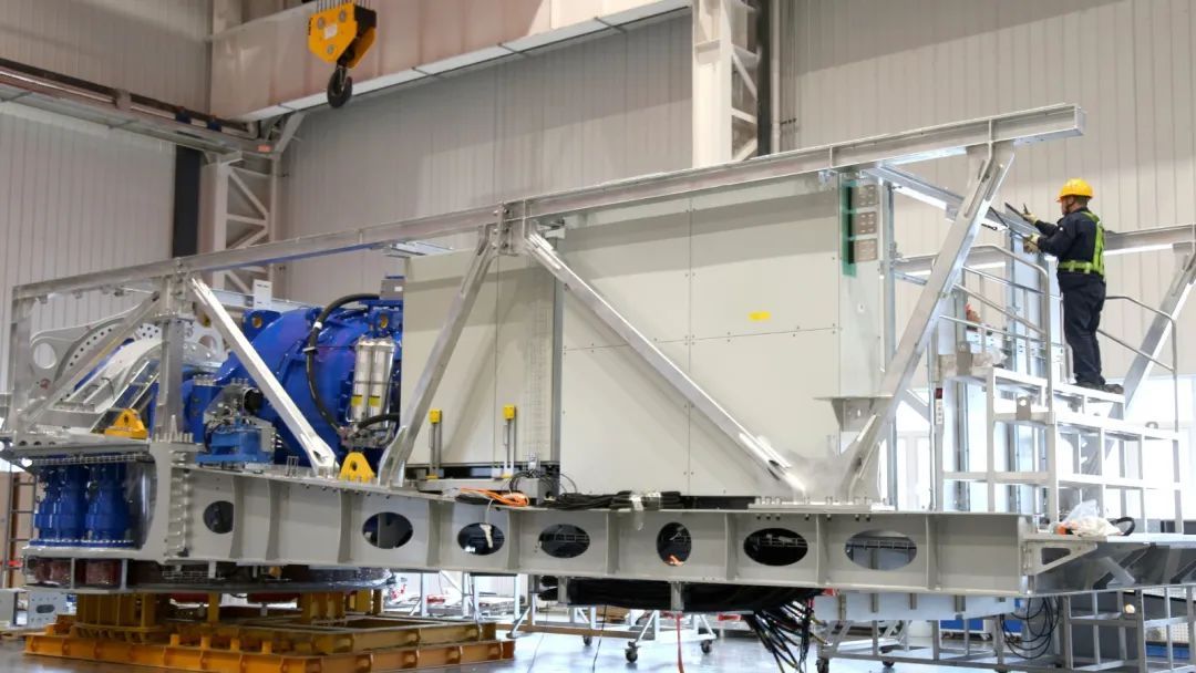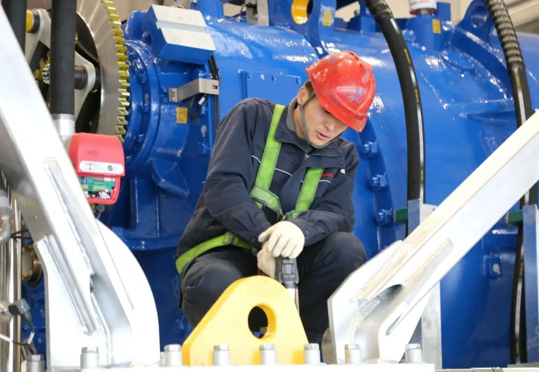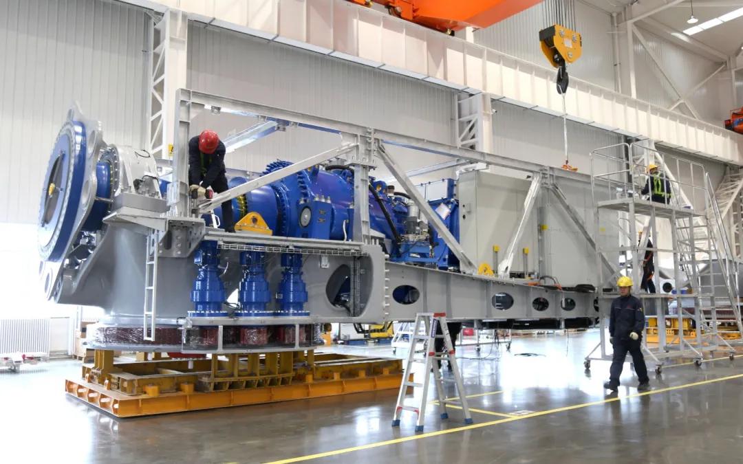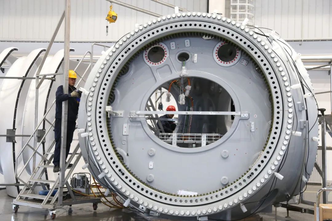 “我們目前生產(chǎn)的這臺組機為5.6兆瓦機組,滿發(fā)狀態(tài)下發(fā)電量每小時可達5600千瓦,機組主要運往華能慶陽新能源示范項目機組基地實施吊裝、測試、并網(wǎng)發(fā)電,2025年下半年公司計劃將單月產(chǎn)能提升20%?!睉c陽三一新能源裝備有限公司生產(chǎn)車間主任楊殿明說。