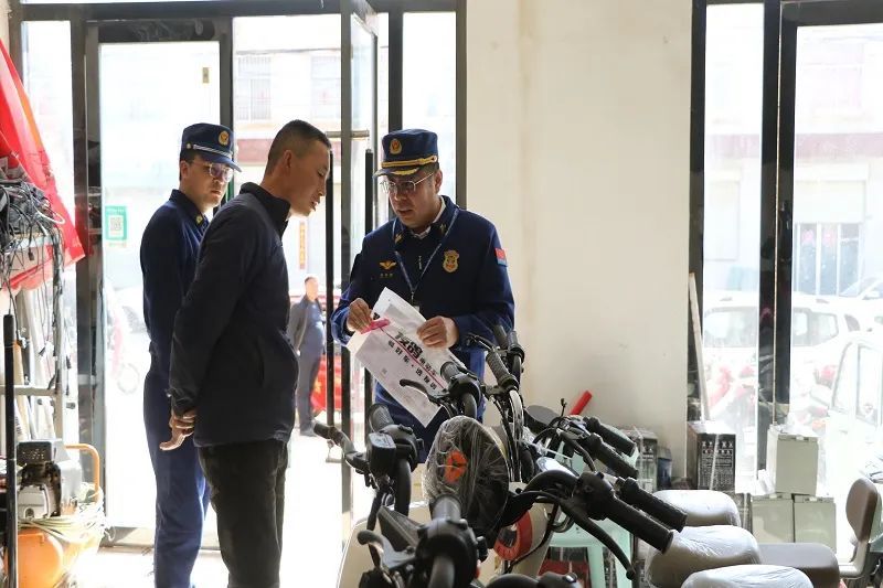 大隊(duì)采取“邊檢查、邊宣傳”的方式,對(duì)鄉(xiāng)鎮(zhèn)沿街商鋪、銷(xiāo)售門(mén)店等重點(diǎn)區(qū)域的電動(dòng)自行車(chē)存放、充電等情況進(jìn)行了檢查,為群眾現(xiàn)場(chǎng)講解了電動(dòng)自行車(chē)防火安全知識(shí)和火災(zāi)發(fā)生的常見(jiàn)原因、電動(dòng)自行車(chē)火災(zāi)的危害性、正確停放和充電的方法,提醒大家嚴(yán)禁在過(guò)道、樓梯間、安全出口等公共區(qū)域停放電動(dòng)自行車(chē),嚴(yán)禁私拉亂接臨時(shí)電線為電動(dòng)自行車(chē)充電的不安全行為,針對(duì)檢查中發(fā)現(xiàn)的電動(dòng)自行車(chē)違規(guī)充電行為,及時(shí)與車(chē)主進(jìn)行交流與溝通,勸導(dǎo)其采取正確、安全的方式充電。
