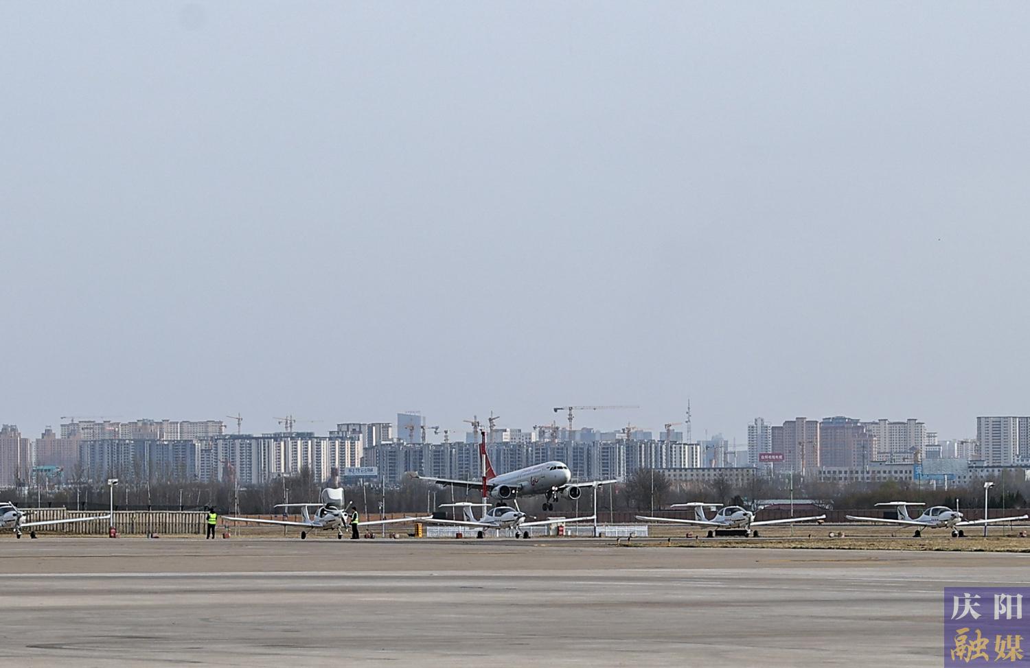 ???慶陽=蘭州GX8889航班滿載乘客平穩(wěn)降落慶陽機場。