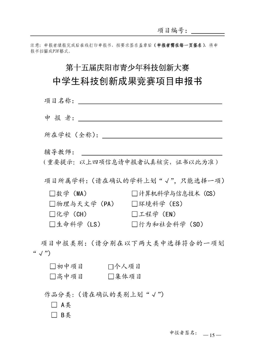 2.第十五屆慶陽(yáng)市青少年科技創(chuàng)新大賽申報(bào)書
