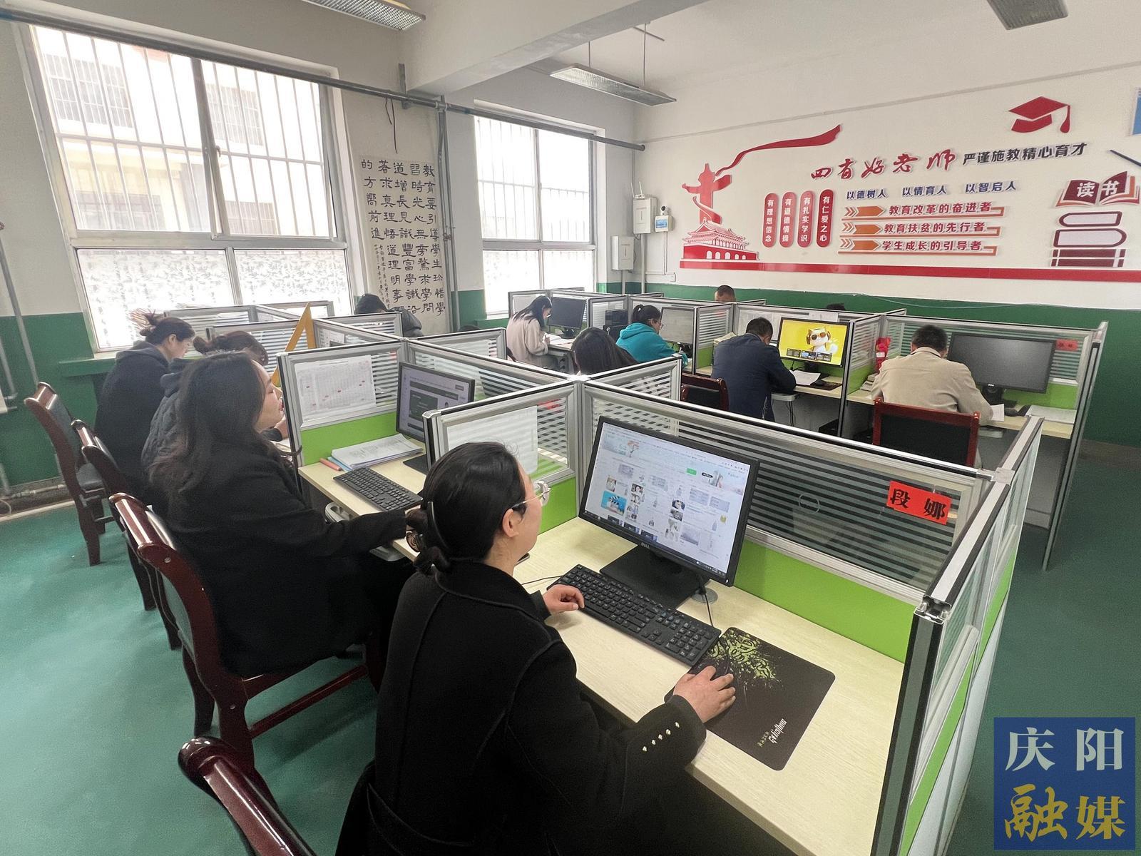 鎮(zhèn)原縣廟渠初級(jí)中學(xué)的老師們正在備課。慶陽融媒記者 王華 攝