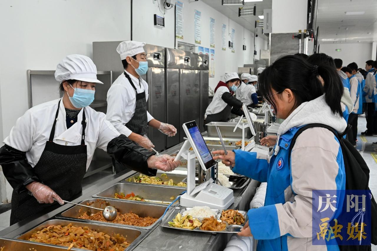 鎮(zhèn)原縣第一中學(xué)學(xué)生正在使用智慧食堂系統(tǒng)打飯。慶陽融媒記者 俄少飛 攝