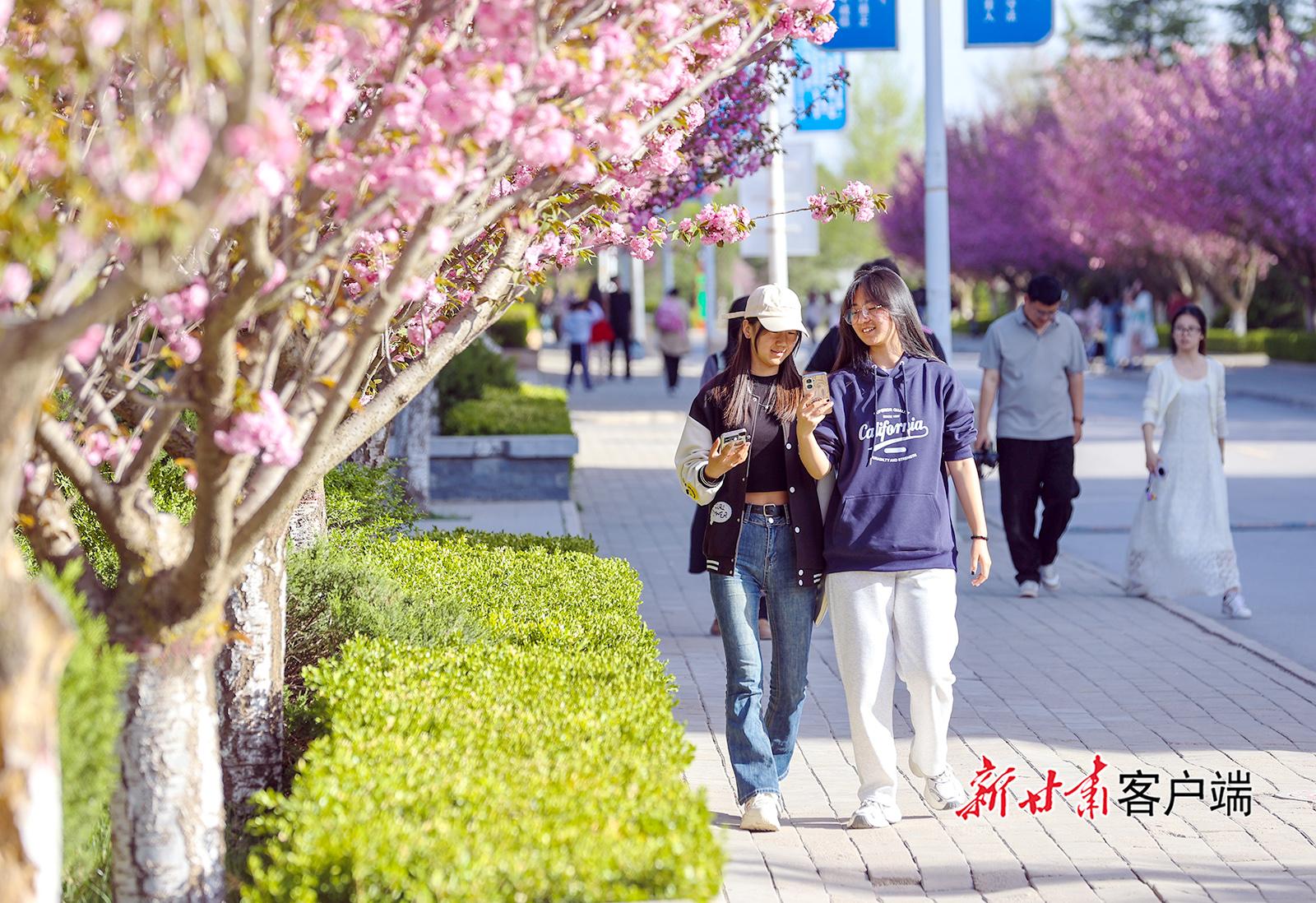 近日,慶陽(yáng)市西峰區(qū)慶城東路與隴東學(xué)院的櫻花進(jìn)入盛花期,粉白交織、艷麗雅致的花朵在枝頭綻放,吸引眾多市民前來(lái)賞花合影。