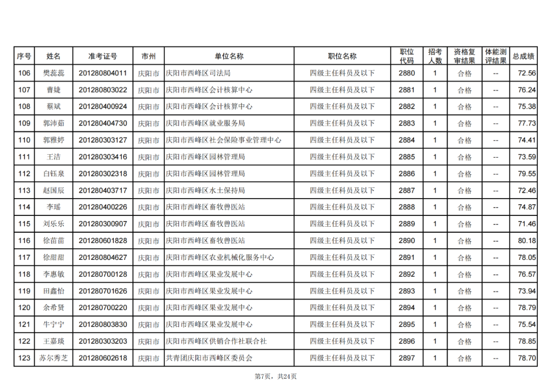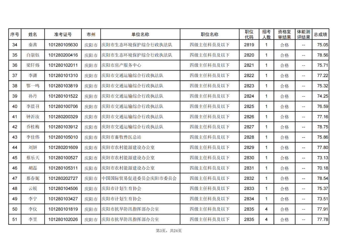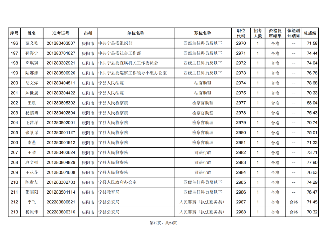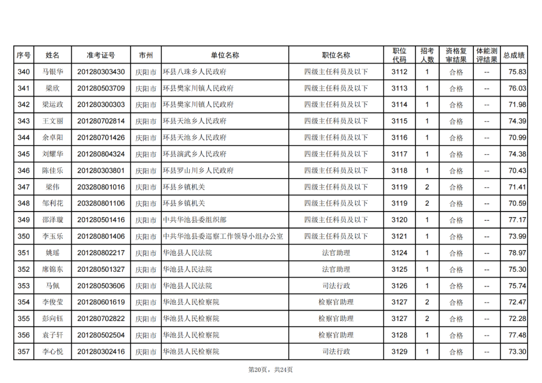 附件:甘肅省2025年度考試錄用公務(wù)員慶陽考區(qū)進(jìn)入體檢人員名單