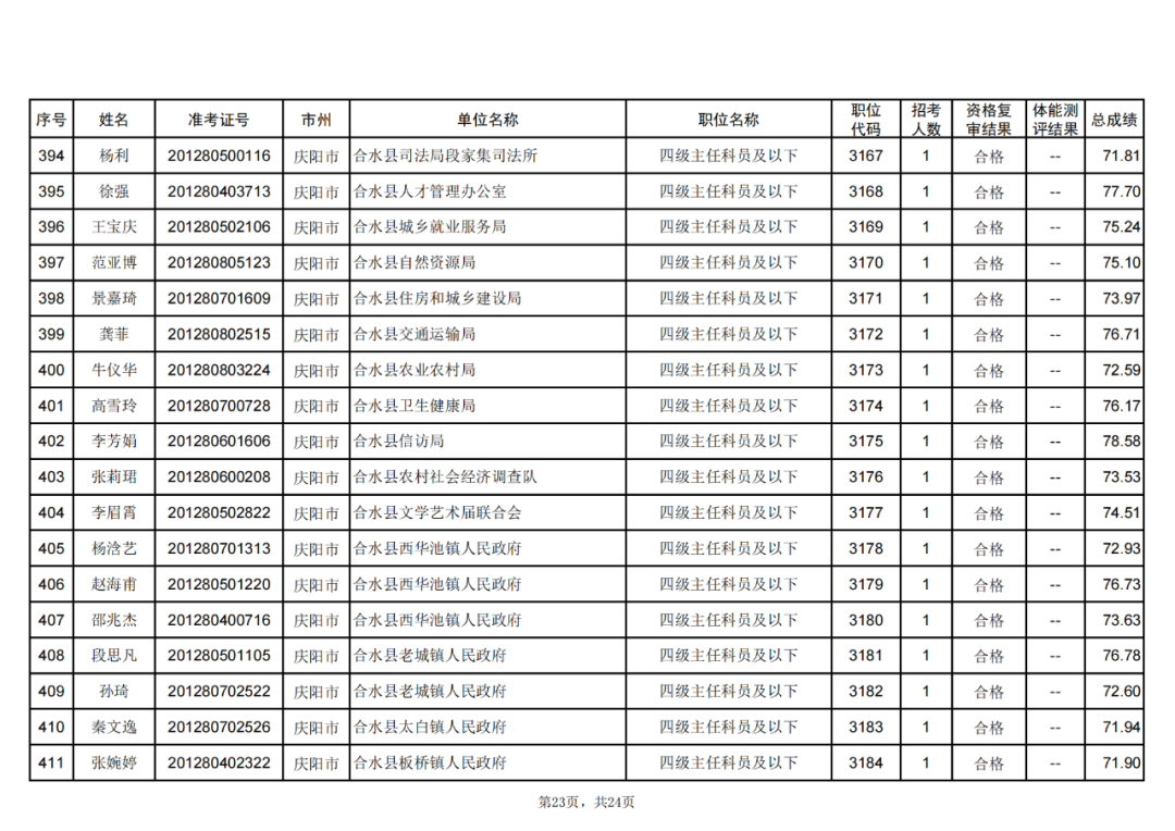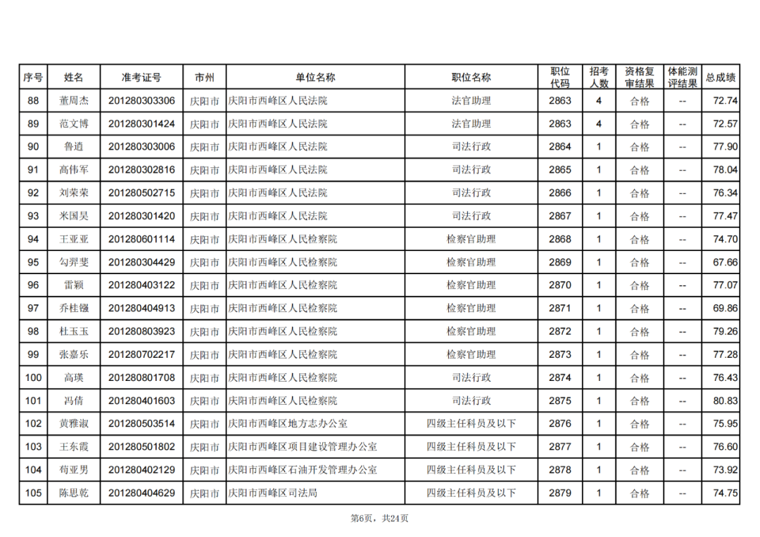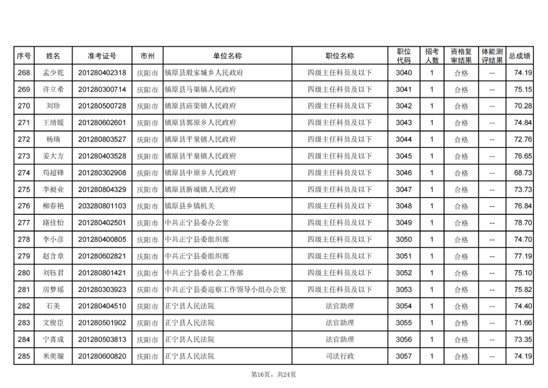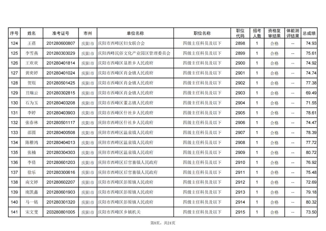 附件:甘肅省2025年度考試錄用公務(wù)員慶陽考區(qū)進(jìn)入體檢人員名單