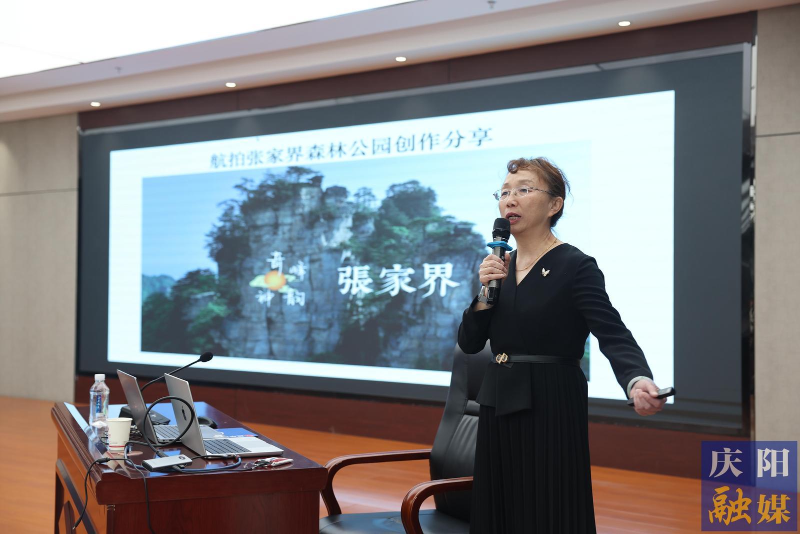 大疆無人機實訓師、蘭州聯(lián)盛暢想合作講師薛妮以《無人機航拍創(chuàng)作用鏡打桿實戰(zhàn)》為題授課(4月23日攝)。
