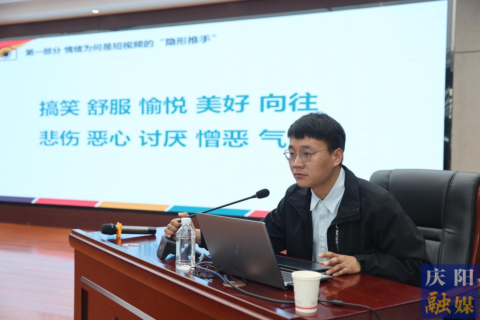 蘭大黨委宣傳部(融媒體中心)廣播視頻新聞部馬強以《要做情緒穩(wěn)定的人,不做情緒穩(wěn)定的片子》為題授課(4月23日攝)。