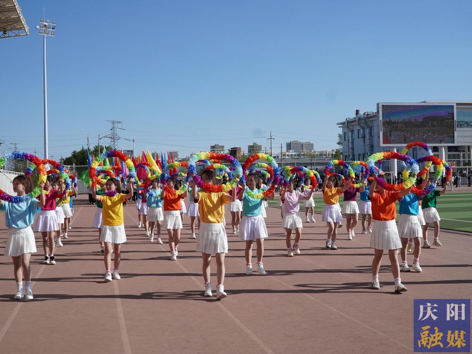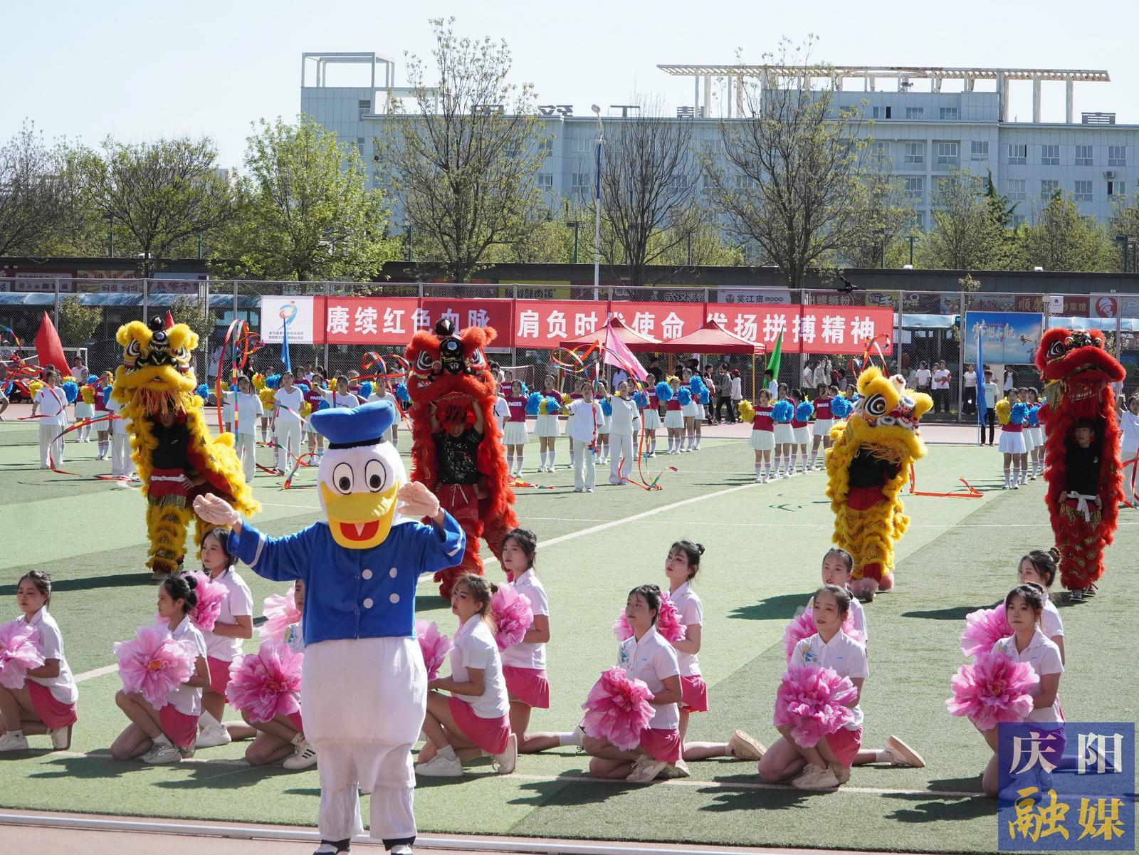文藝表演將運動會開幕式推向高潮。第一篇章“錦緞飛舞,虎躍神州”中,彩綢如霞、魚骨扇繪盛世,舞獅騰躍送吉祥;第二篇章“武動乾坤,華夏錦繡”以國學武術操詮釋剛?cè)岵?,百條彩綢化作逐夢跑道;第三篇章“逐夢青春,紅心向黨”則用啦啦操躍動時代節(jié)拍,千人齊唱《唱支山歌給黨聽》賡續(xù)紅色血脈。當《我們都是追夢人》的旋律響徹云霄,青春誓言與體育激情交織,繪就了一幅“強國有我”的壯美畫卷。
