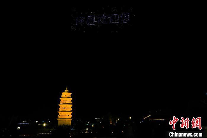 “五一”假期期間,甘肅慶陽環(huán)縣無人機表演邀八方游客。環(huán)縣融媒體中心供圖