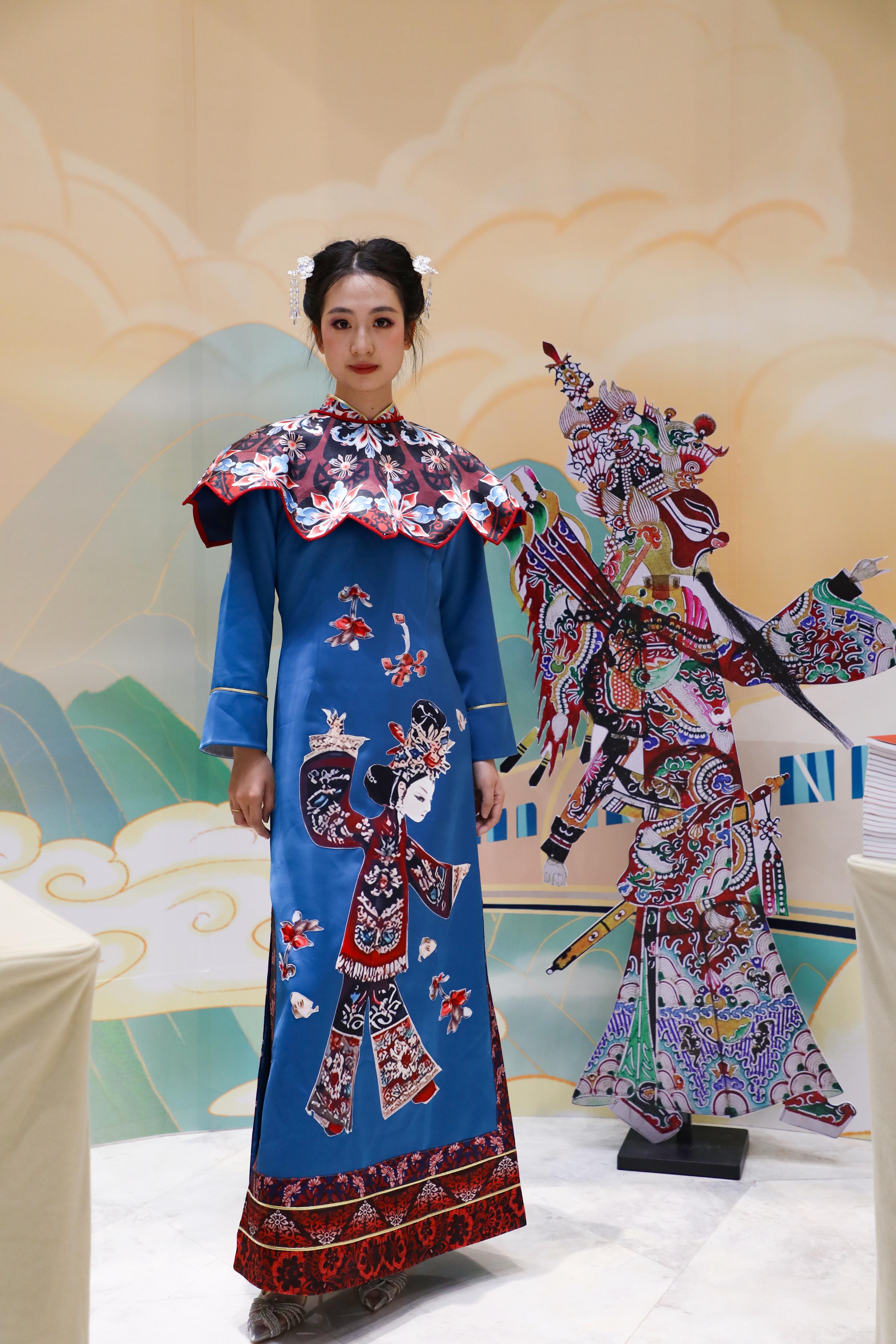 環(huán)縣皮影被譽為“東方魔術(shù)般的藝術(shù)”,其制作工藝極為考究,需經(jīng)過選皮、制皮、雕刻、著色等八大工序,最終形成線條流暢、色彩絢麗的影件。此次展演將皮影經(jīng)典紋樣——如戲曲臉譜、祥云瑞獸、古典建筑等融入現(xiàn)代時裝,既保留了皮影的非遺魅力,又賦予其流動的時尚韻律。