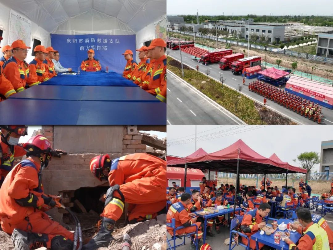 在第17個防災(zāi)減災(zāi)日之際,慶陽消防組織開展地震救援跨區(qū)域?qū)崙?zhàn)演練,33車130余人3犬行程近300公里,聯(lián)動地震、醫(yī)療等部門參演,市地震局全程觀摩。