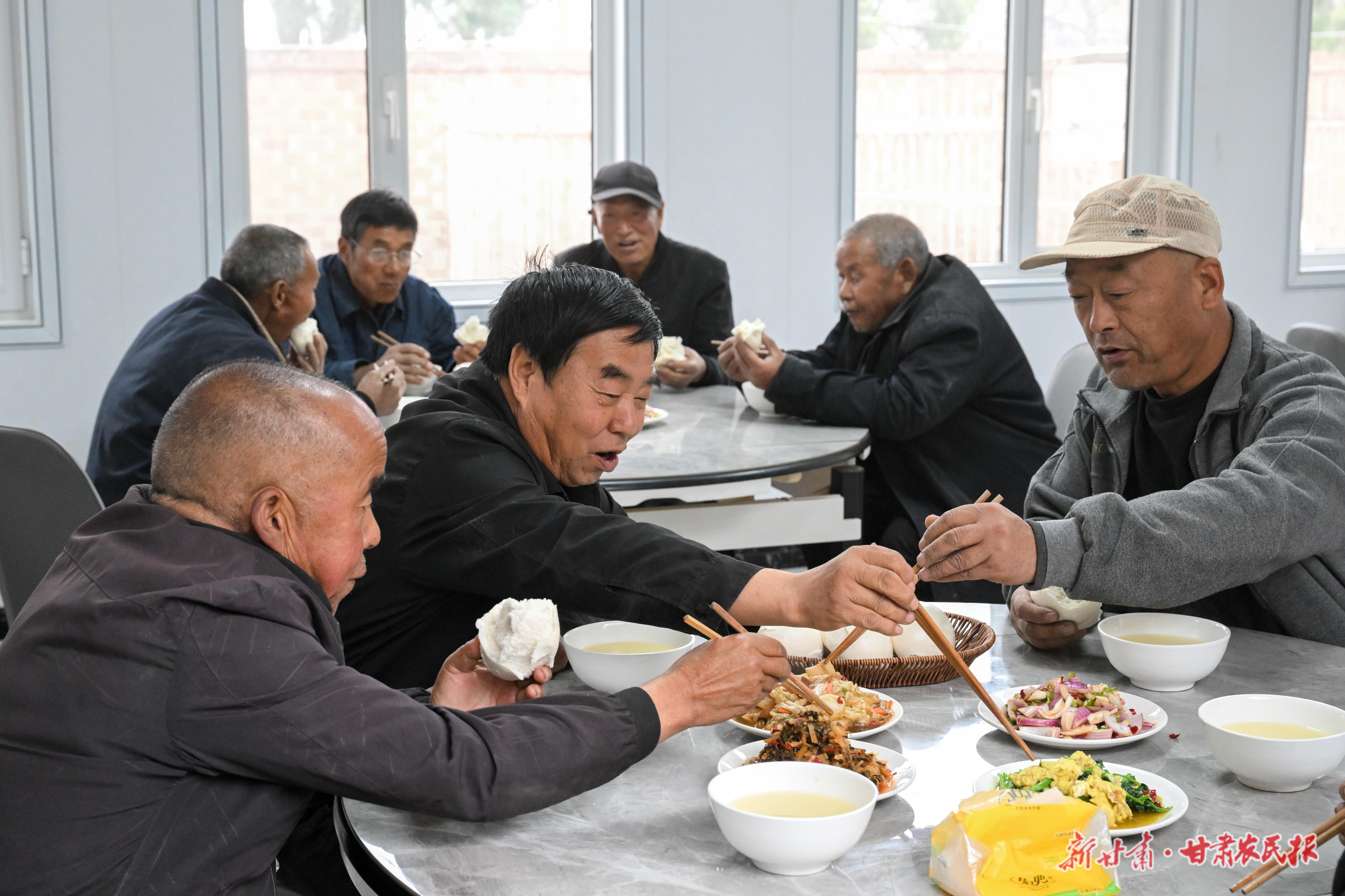 老人們在互助幸福院就餐。俄少飛 攝