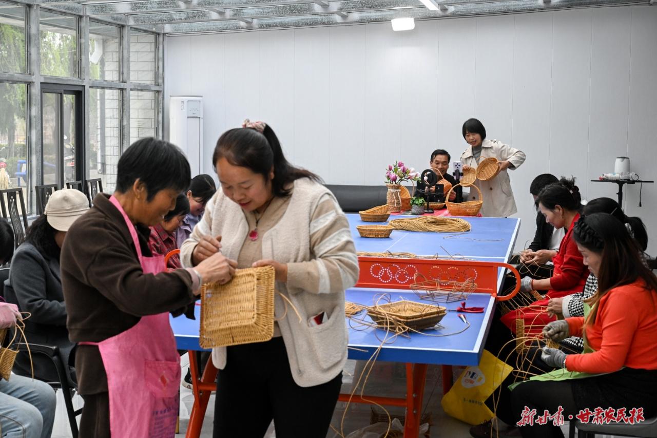 “家人們看這款手工籃,天然藤編,結實又環(huán)保?!痹谌嚼畲遛r(nóng)文旅融合直播基地,十多名婦女手指翻飛,藤條在巧手下化作精巧的花籃、果盤。村黨總支書記王艷艷一邊和村上婦女一起藤編果盤,一邊和村干部對著手機鏡頭,向網(wǎng)友們推介這些飽含著鄉(xiāng)村韻味的手工藝品。