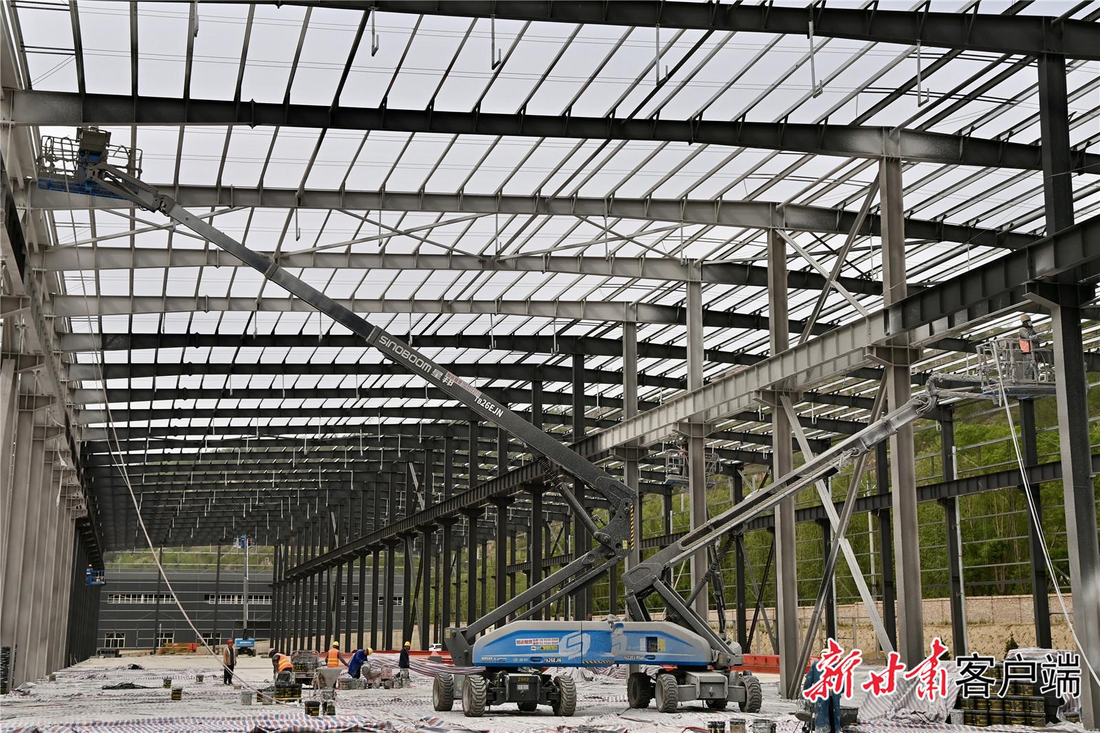 該項目于2024年4月開工建設(shè)。目前,1號廠房已完成鋼結(jié)構(gòu)施工,2號廠房正在安裝相關(guān)設(shè)備,進(jìn)場的鍍鋅設(shè)備正在安裝中,廠區(qū)內(nèi)道路硬化和水暖電消防管道施工等全部完成。