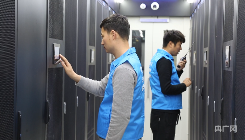 中國移動工作人員在機房內(nèi)進行設(shè)備巡檢(央廣網(wǎng)發(fā) 石強 攝)