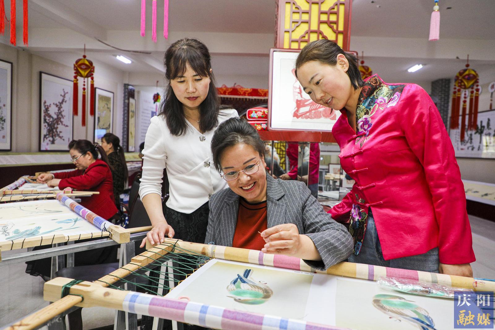 繡娘創(chuàng)作刺繡作品。 慶陽(yáng)融媒記者 俄少飛 攝