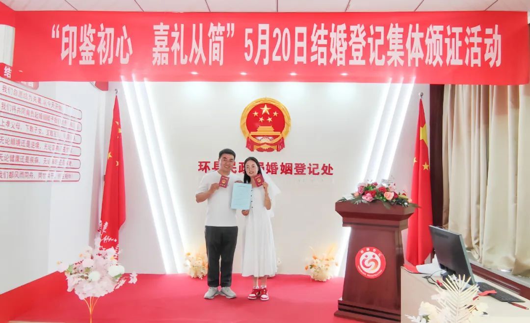 5月20日,環(huán)縣民政局婚姻登記處圍繞婚俗改革主題,精心策劃開展“抵制高額彩禮 倡導(dǎo)文明婚俗 弘揚(yáng)時(shí)代新風(fēng)”系列宣傳活動(dòng)。通過(guò)創(chuàng)新形式、豐富內(nèi)容,讓新人們?cè)诔錆M儀式感的氛圍中踐行婚俗新風(fēng),活動(dòng)取得顯著成效。??