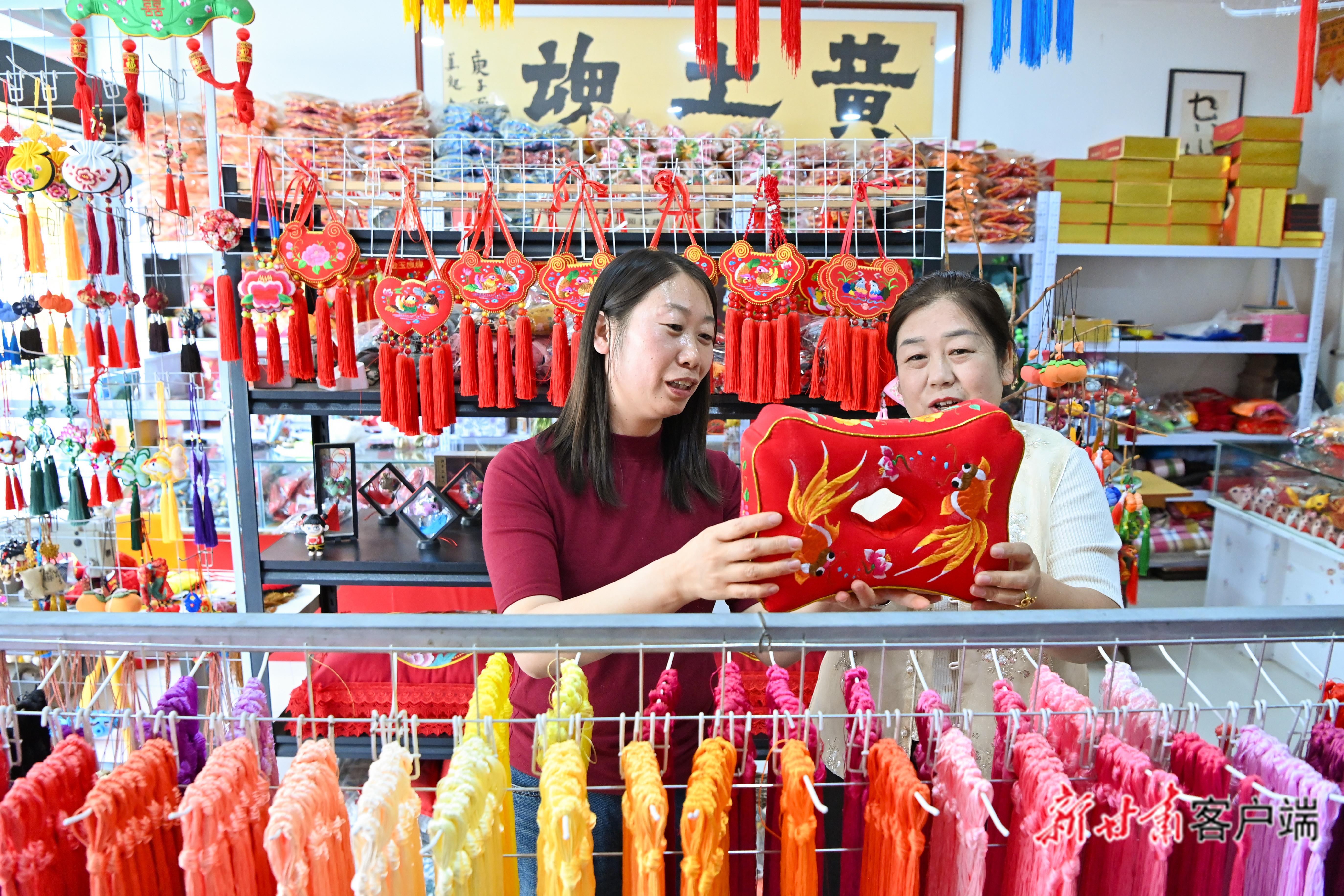 在她身后的榮譽墻上,“中國特色旅游商品大賽銅獎”“全國巾幗脫貧示范基地”“甘肅省鄉(xiāng)村振興巾幗示范基地”等證書熠熠生輝,訴說著她在傳承與創(chuàng)新道路上的不懈努力與非凡成就。
