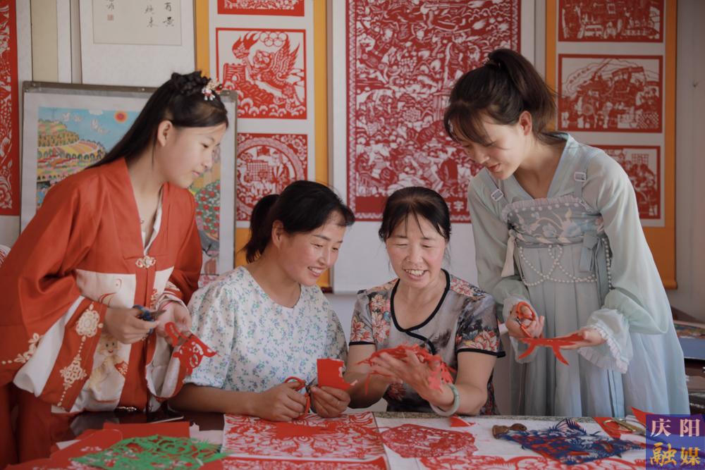 慶陽剪紙藝人為愛好者們講授剪紙技藝。 特約攝影 秦彥慧 攝