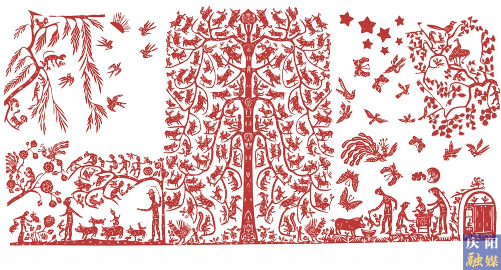 慶陽剪紙古拙質(zhì)樸、保留著原生態(tài)元素,題材廣泛,涵蓋花草鳥獸、神話傳說等,寄托著人們祈福迎祥等美好愿望。