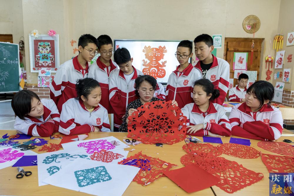 慶陽剪紙藝人給學(xué)生們講解慶陽剪紙的風(fēng)格和特色。 慶陽融媒記者 俄少飛 攝