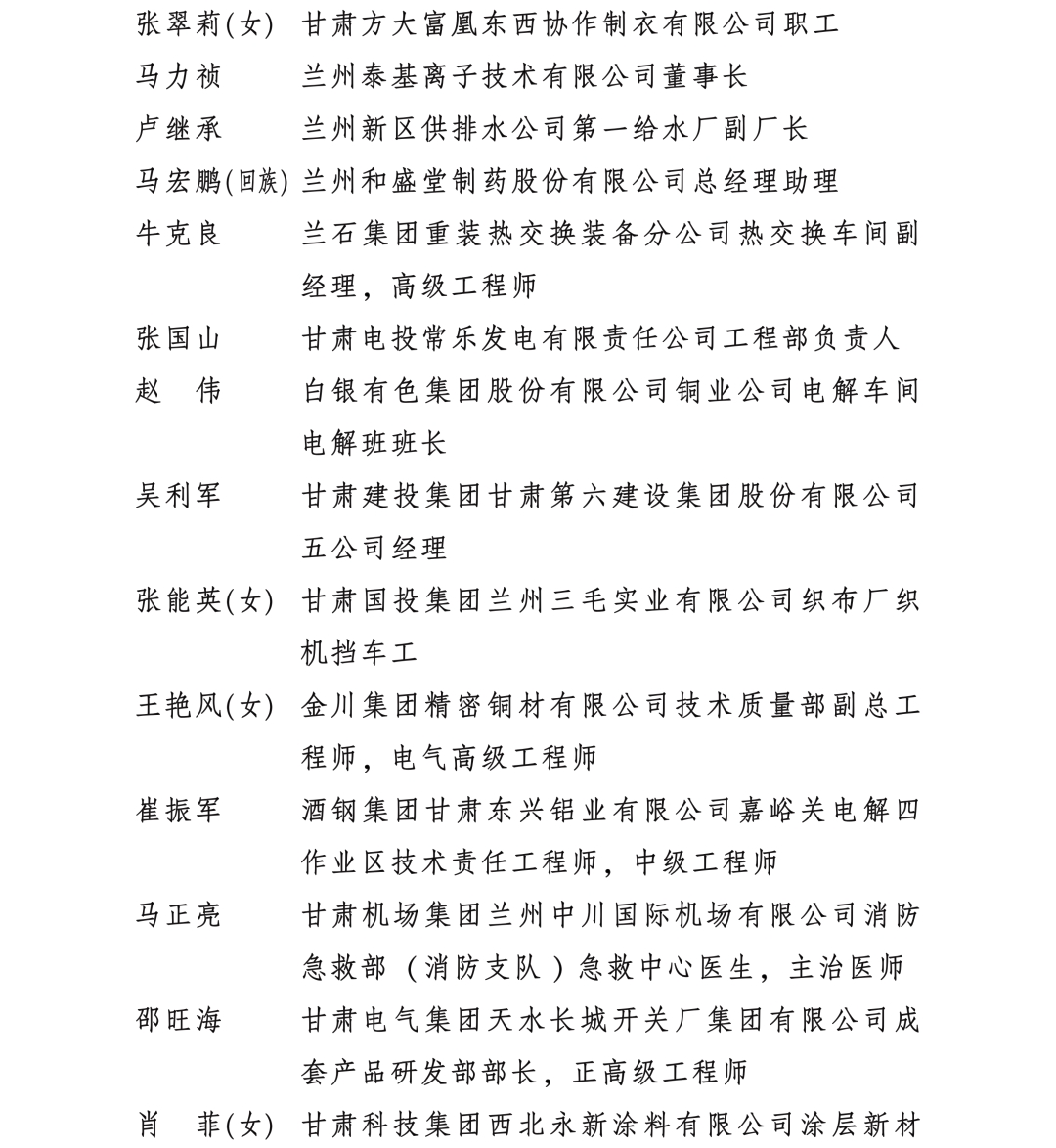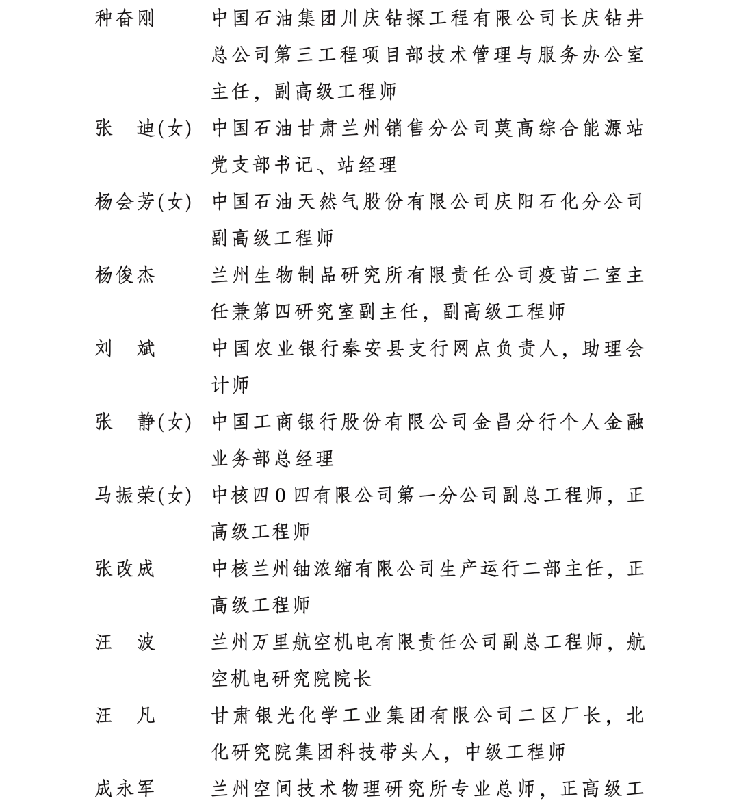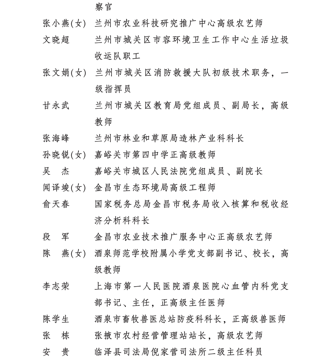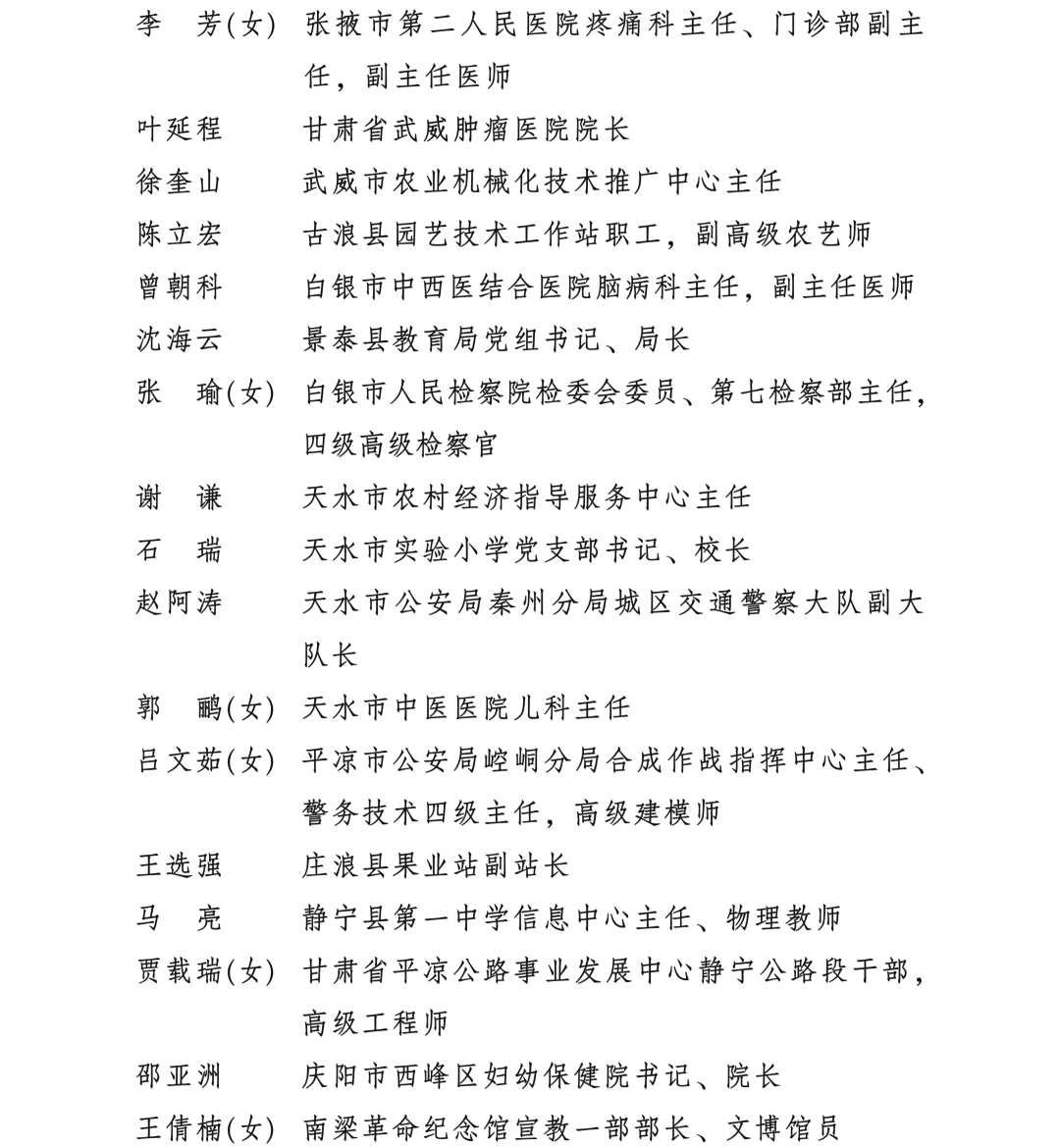 甘肅省勞動模范和先進工作者名單