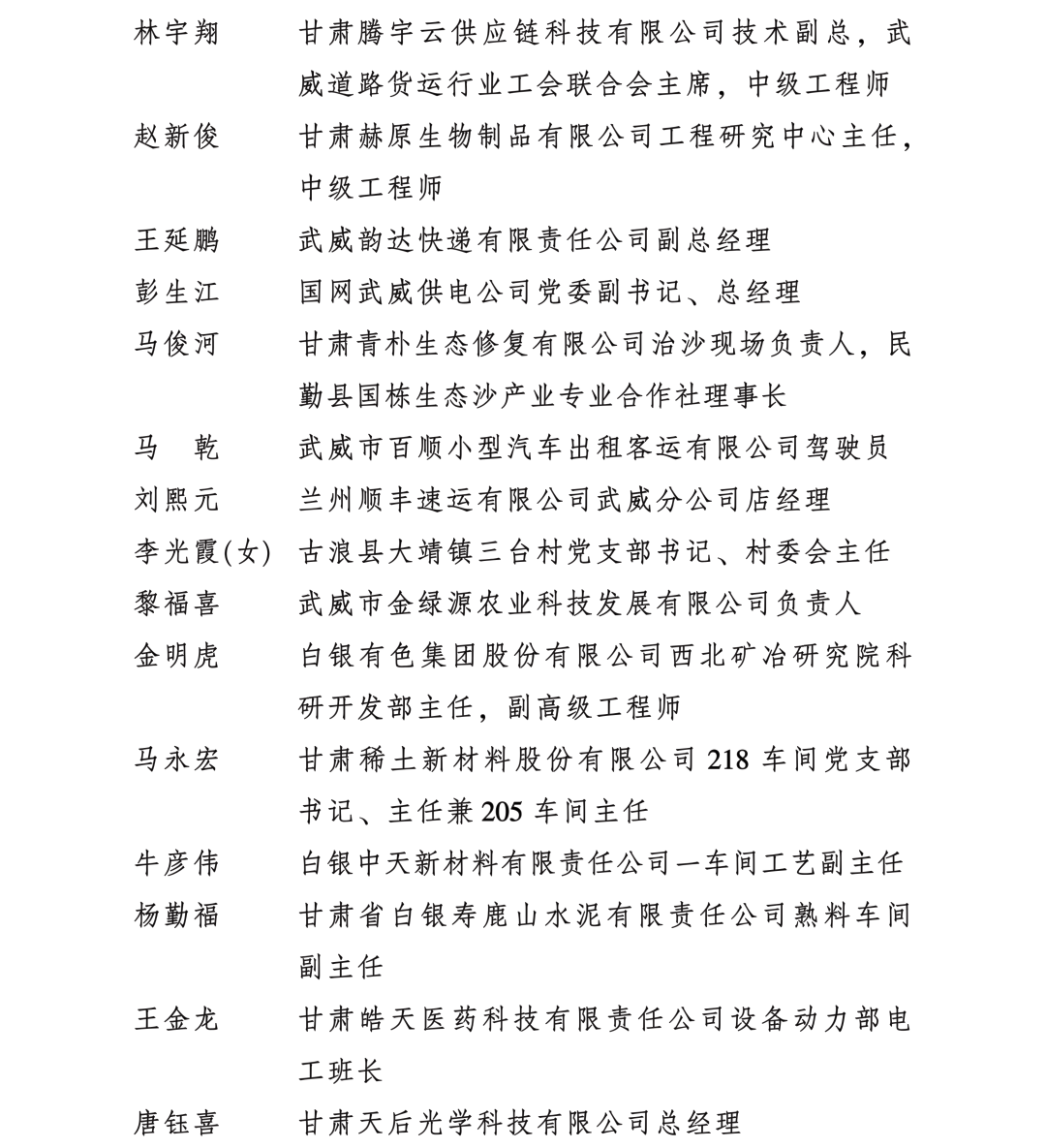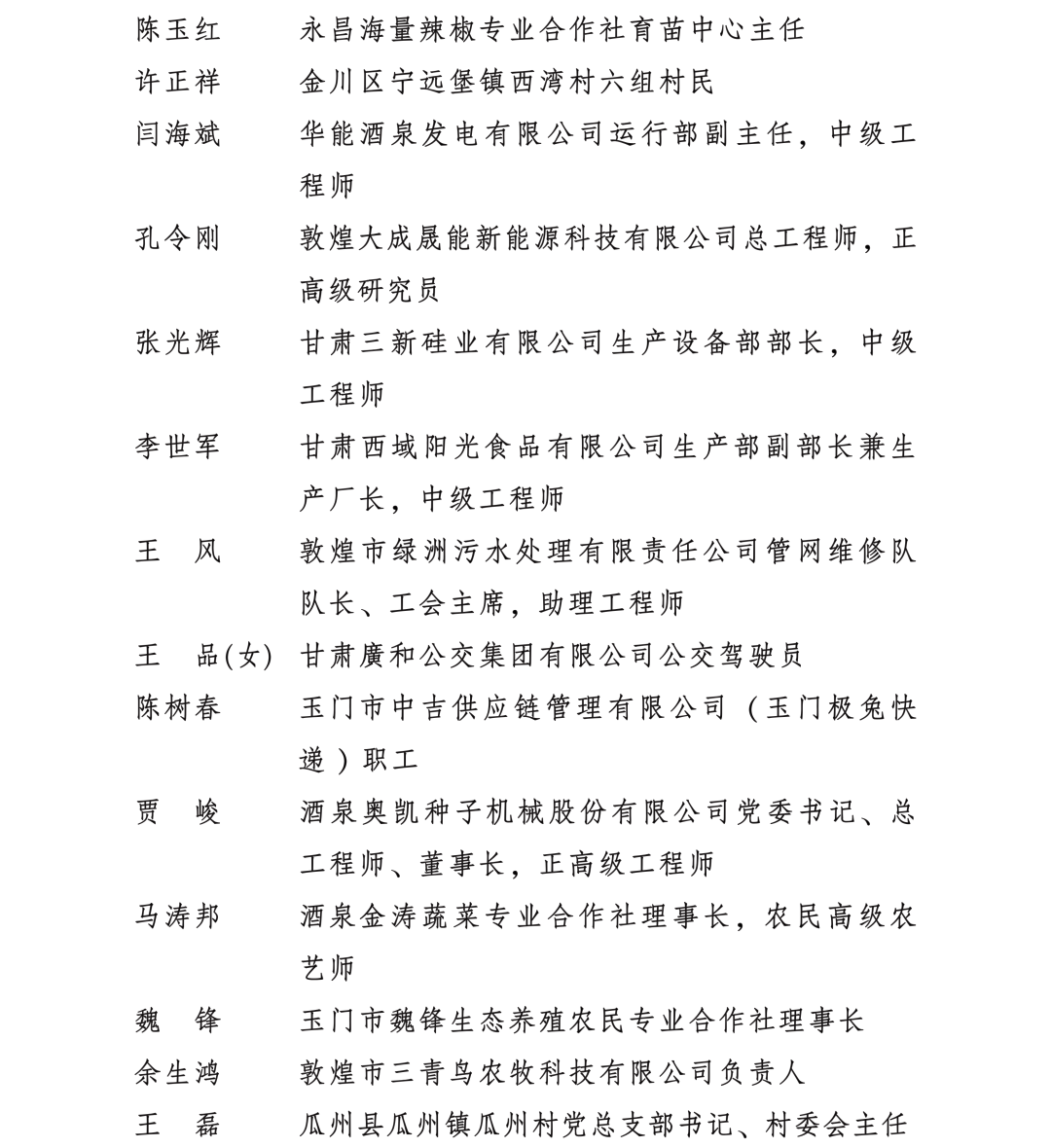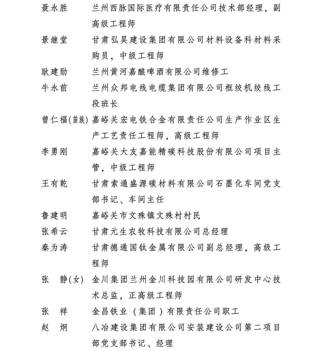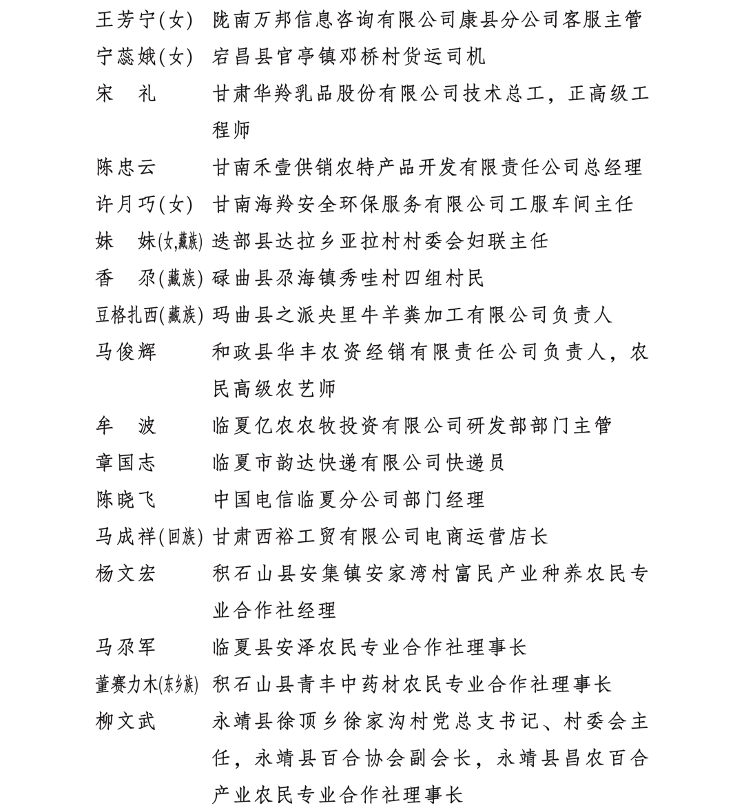 甘肅省勞動模范和先進工作者名單