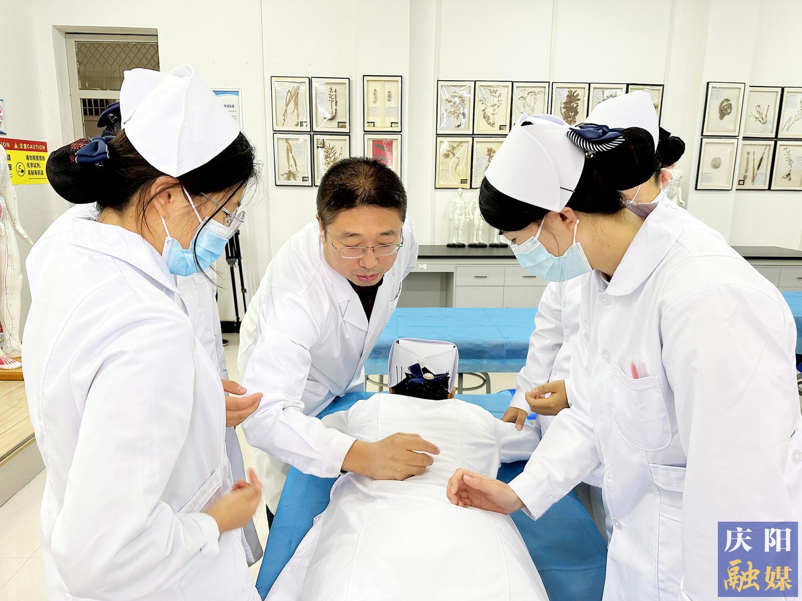 隴東學(xué)院醫(yī)學(xué)院學(xué)生進行中醫(yī)推拿實操課。慶陽融媒記者 路世玲 攝