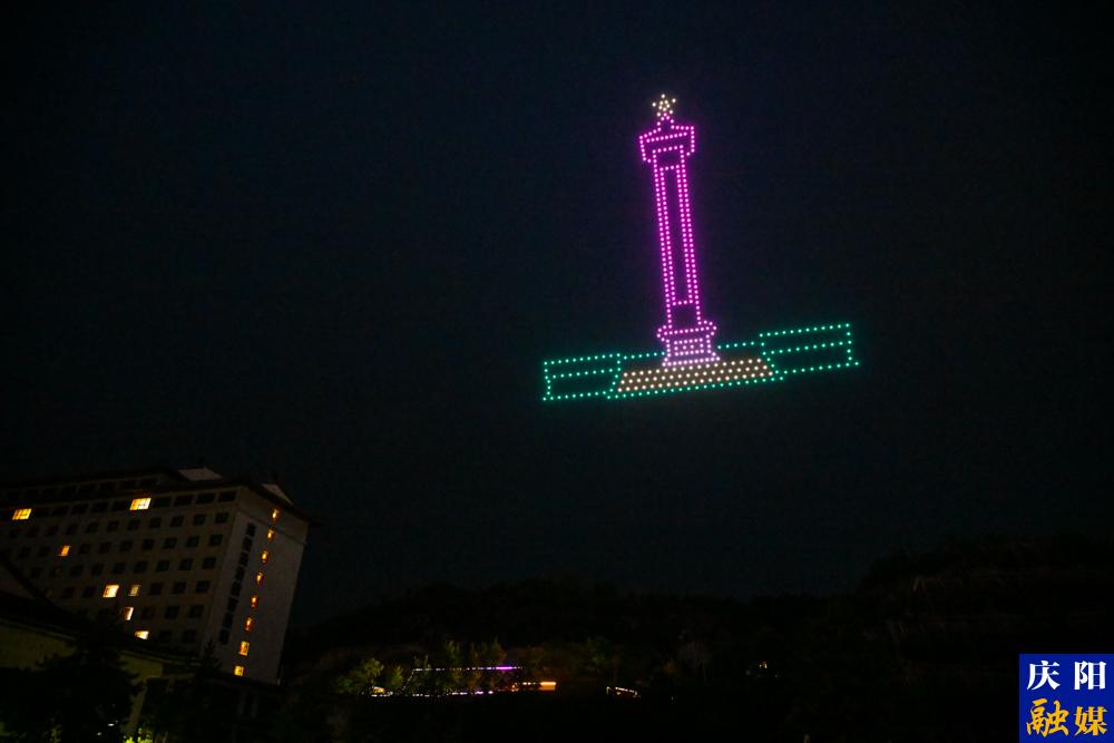 當南梁紀念館的立體造型顯現(xiàn)云端,“騎行慶陽 逐夢南梁”字幕在300米高空粲然綻放,夜空瞬間化作宇宙級光影劇場??萍汲绦蚺c藝術(shù)創(chuàng)意的精密咬合在此刻迸發(fā)魔力,無人機群時而化作銀河瀑布傾瀉而下,時而重組為對慶陽的浪漫表白,每秒的燈光變幻,都是算法與美學的交響詩,引發(fā)現(xiàn)場眾人齊聲驚嘆。坐標代碼編織出比煙火更絢爛、比星空更可控的奇景,共同點了亮高原小城的夏夜之夢。