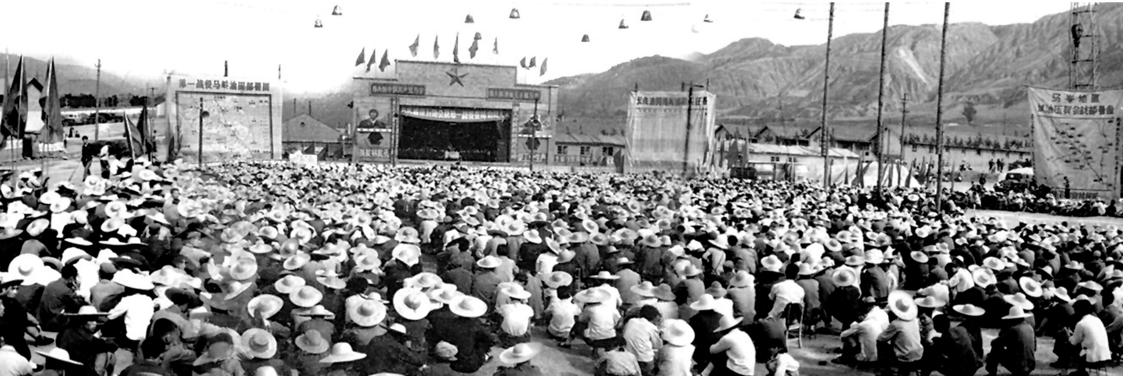 上世紀(jì)70年代,長(zhǎng)慶油田五路會(huì)戰(zhàn)誓師大會(huì)現(xiàn)場(chǎng)。通訊員 韓忠林 攝