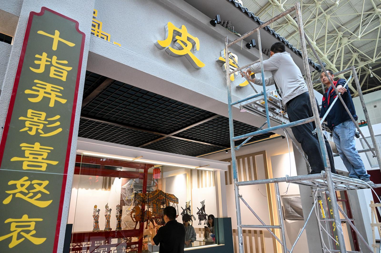 岐黃大道一側(cè)非遺大集展位,民俗手工藝品已開始展銷。