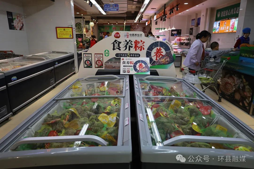 在位于環(huán)縣盤(pán)旋路的圣意家園超市,一進(jìn)門(mén)就看到融入艾葉、粽子、龍舟等端午元素的各式各樣粽子禮盒擺放在貨架顯眼位置,除了裝飾精美的展銷(xiāo)區(qū),由低溫冷柜、常溫小包裝、網(wǎng)兜裝、袋裝的多種口味的散裝粽子也是擺放的滿(mǎn)滿(mǎn)當(dāng)當(dāng),供消費(fèi)者駐足挑選?!翱爝^(guò)節(jié)了,超市的東西比較齊全,我們過(guò)來(lái)買(mǎi)點(diǎn)粽葉、紅棗、糯米等原材料,拿回家,一家人坐在一起包粽子,老人小孩同時(shí)也能感受到過(guò)節(jié)的氣氛?!笔忻袢蜗缠P說(shuō)。