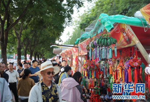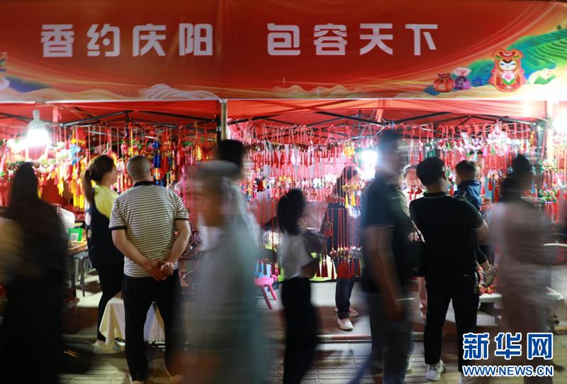 5月28日,甘肅省慶陽(yáng)市西峰區(qū)的香包集市人來(lái)人往。新華網(wǎng)發(fā)(劉欣瑜 攝)
