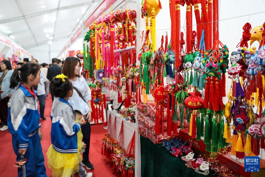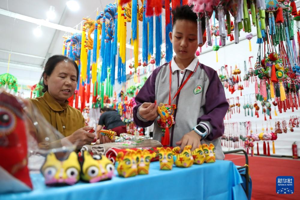 5月29日,市民在慶陽(yáng)香包民俗文化節(jié)非遺沉浸體驗(yàn)區(qū)選購(gòu)香包。新華社記者 郎兵兵 攝