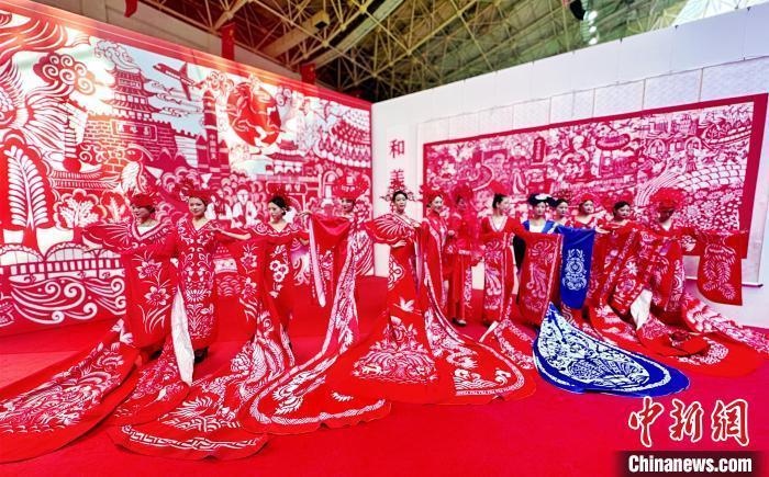 慶陽(yáng)市鎮(zhèn)原縣剪紙服裝秀。高展 攝