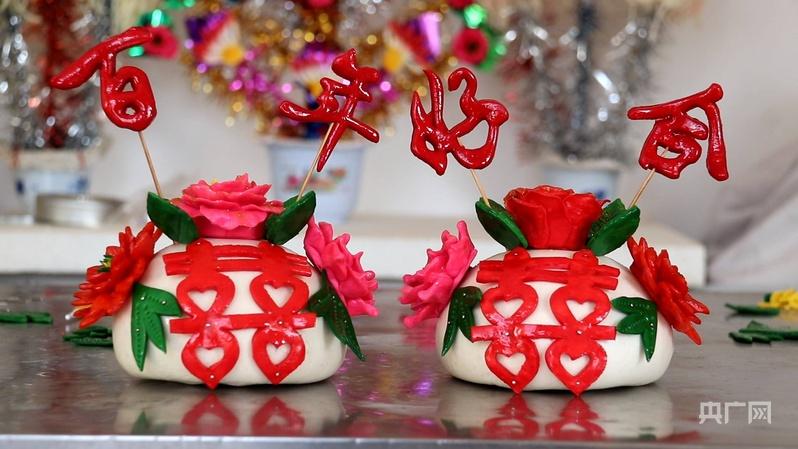 朱亞玲制作的“百年好合”花饃(央廣網(wǎng)發(fā) 劉新艷 攝)