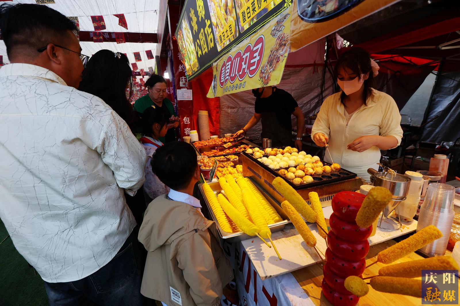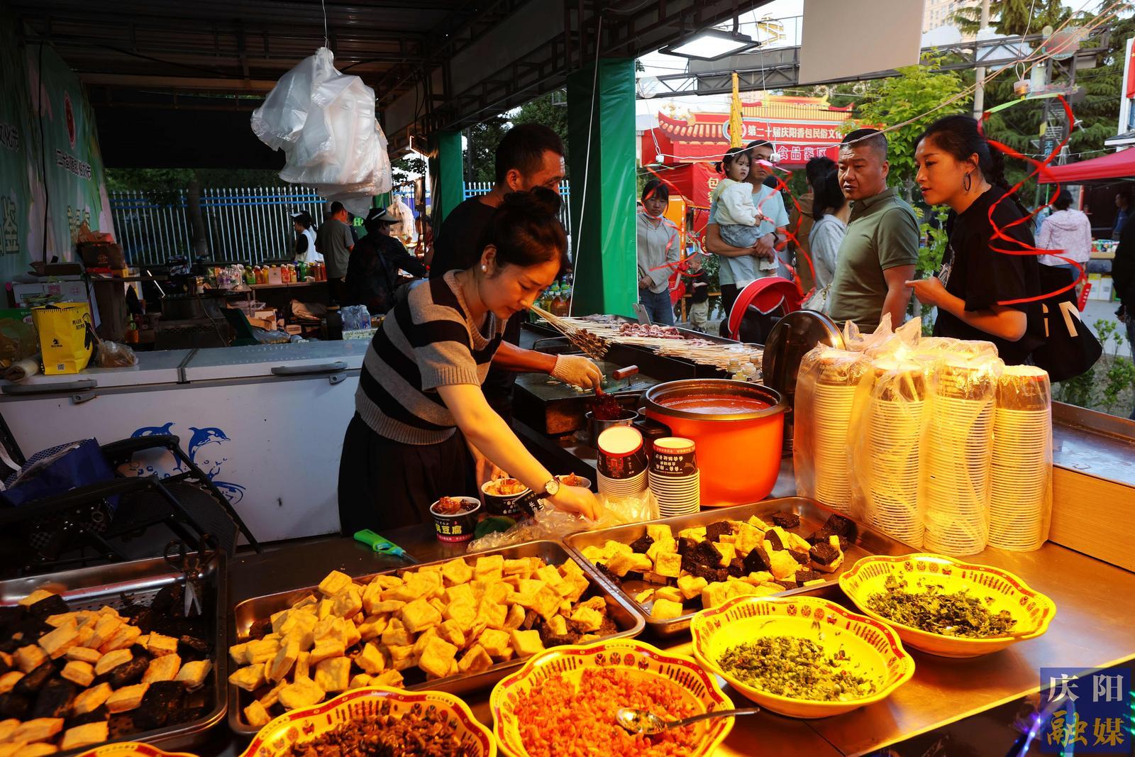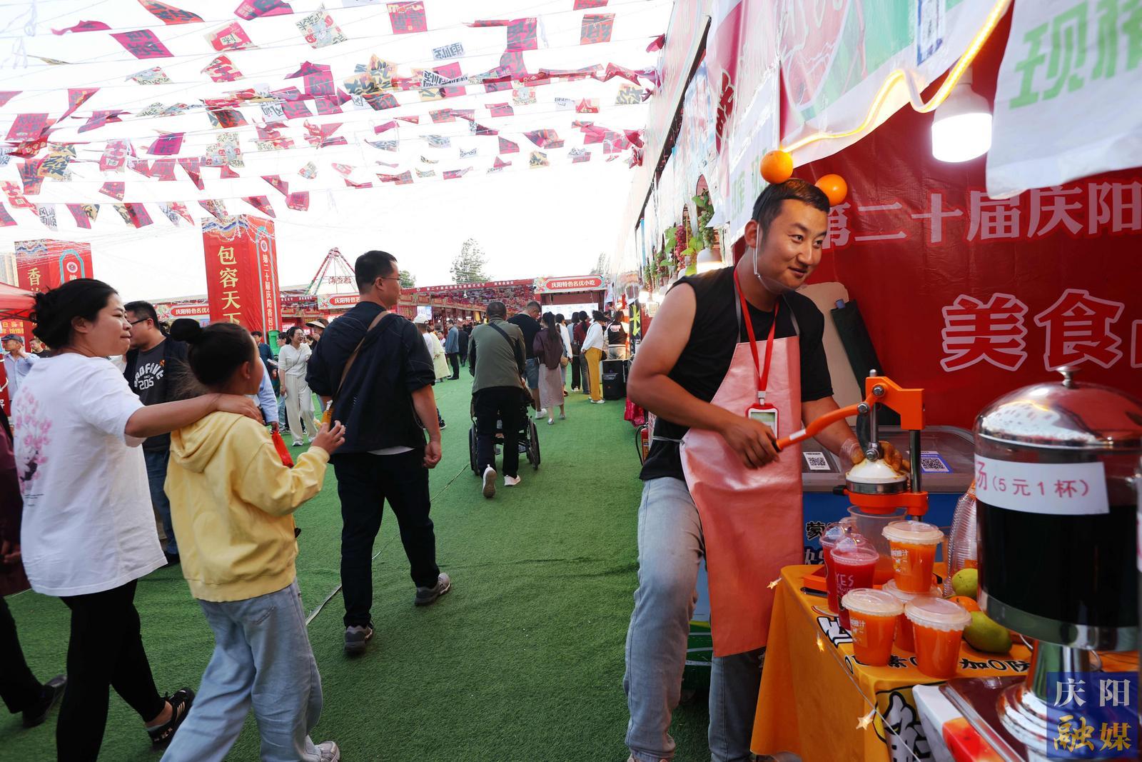連日來,節(jié)會(huì)美食品鑒區(qū)內(nèi)人聲鼎沸,美食飄香。數(shù)百個(gè)展位的各種特色美食,吸引了無數(shù)游客流連忘返,盡享饕餮大餐。特別是蒸碗、羊肉、饸饹面、豬血燴豆腐、涼皮、涼粉等慶陽特色名優(yōu)小吃,更是受到游客的追捧。而燒烤、冰粉、果汁等消夏美食一路熱銷。另外,新疆、湖南、陜西等地的特色美食也一一亮相,吸引游客味蕾嘗鮮。