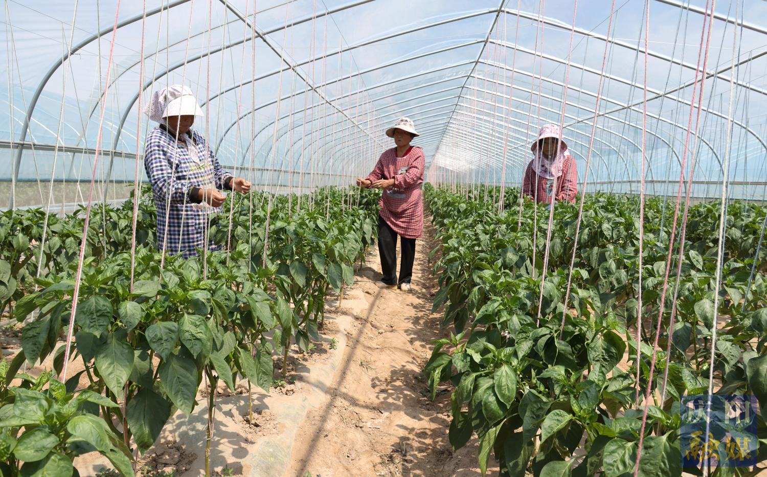 6月5日西峰區(qū)溫泉鎮(zhèn)齊樓村設(shè)施蔬菜基地工人給辣椒秧苗打叉。