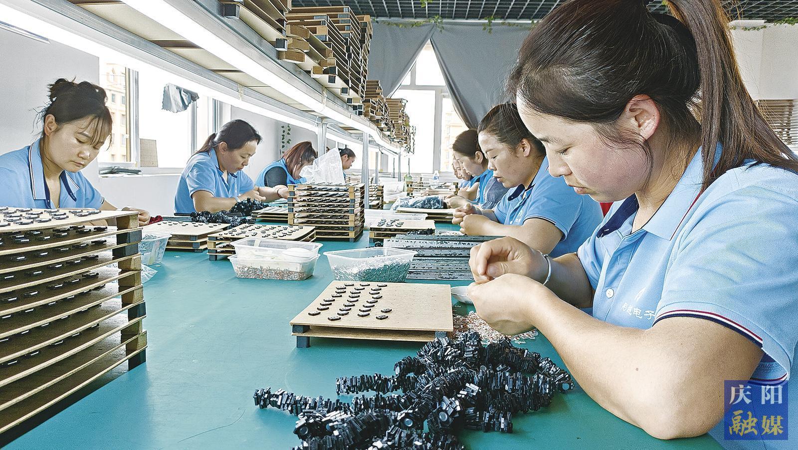 據(jù)慶陽彤越電子有限公司總經(jīng)理李志文介紹,公司成立于2023年3月,目前解決就業(yè)58人,帶動(dòng)脫貧戶就業(yè)15戶,年產(chǎn)值280萬元左右,產(chǎn)品主要銷往廣東、江蘇等地的大型工廠。